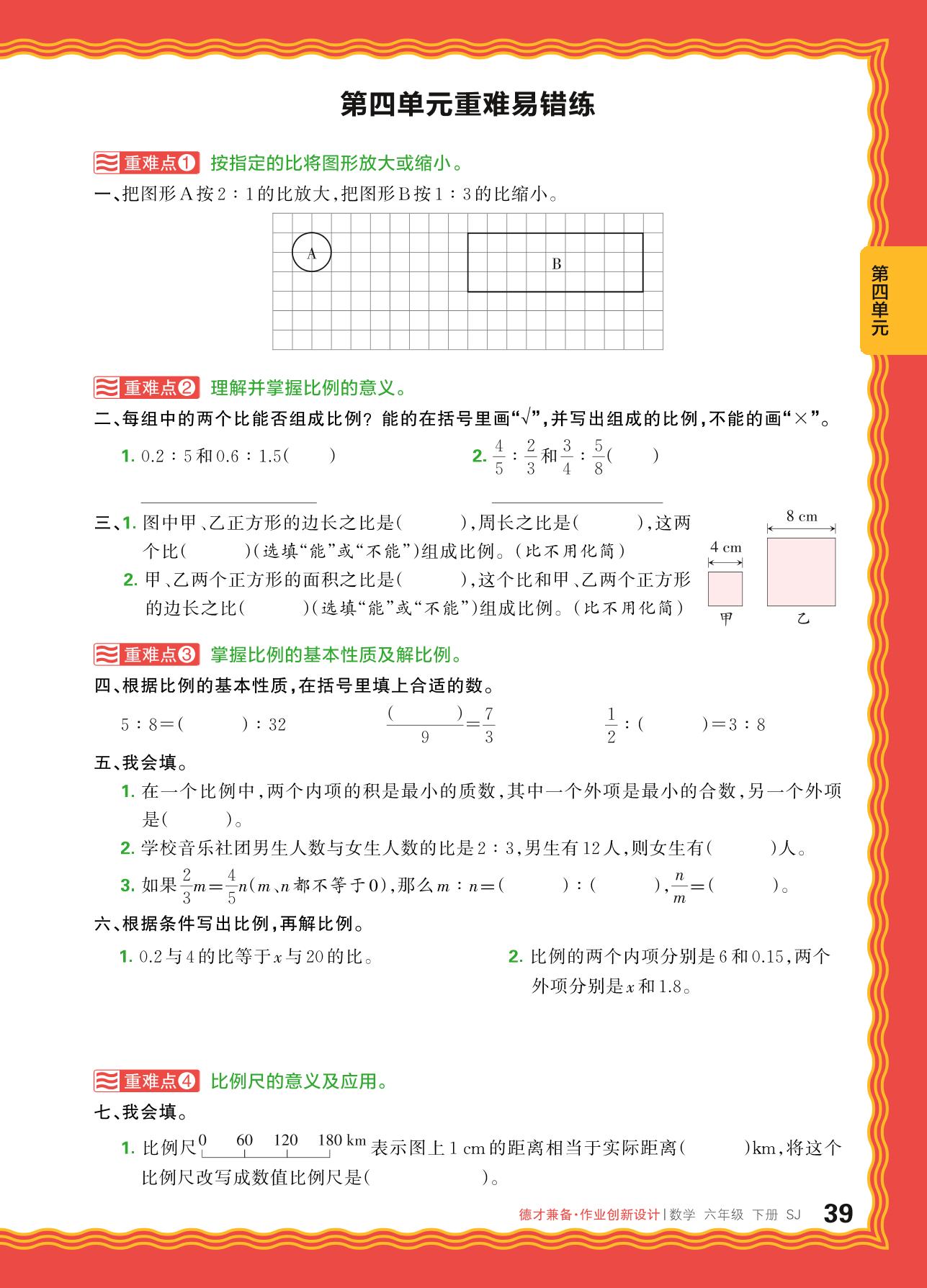 2024春下册六年级数学苏教版 第四单元重难易错练