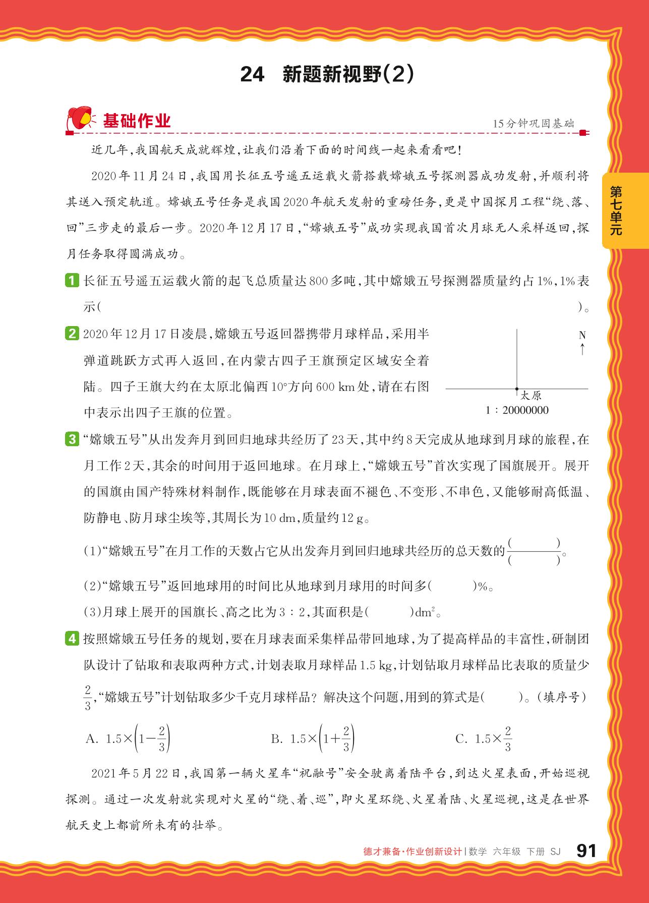 2024春下册六年级数学苏教版 第七单元 总复习——24. 新题新视野(2)