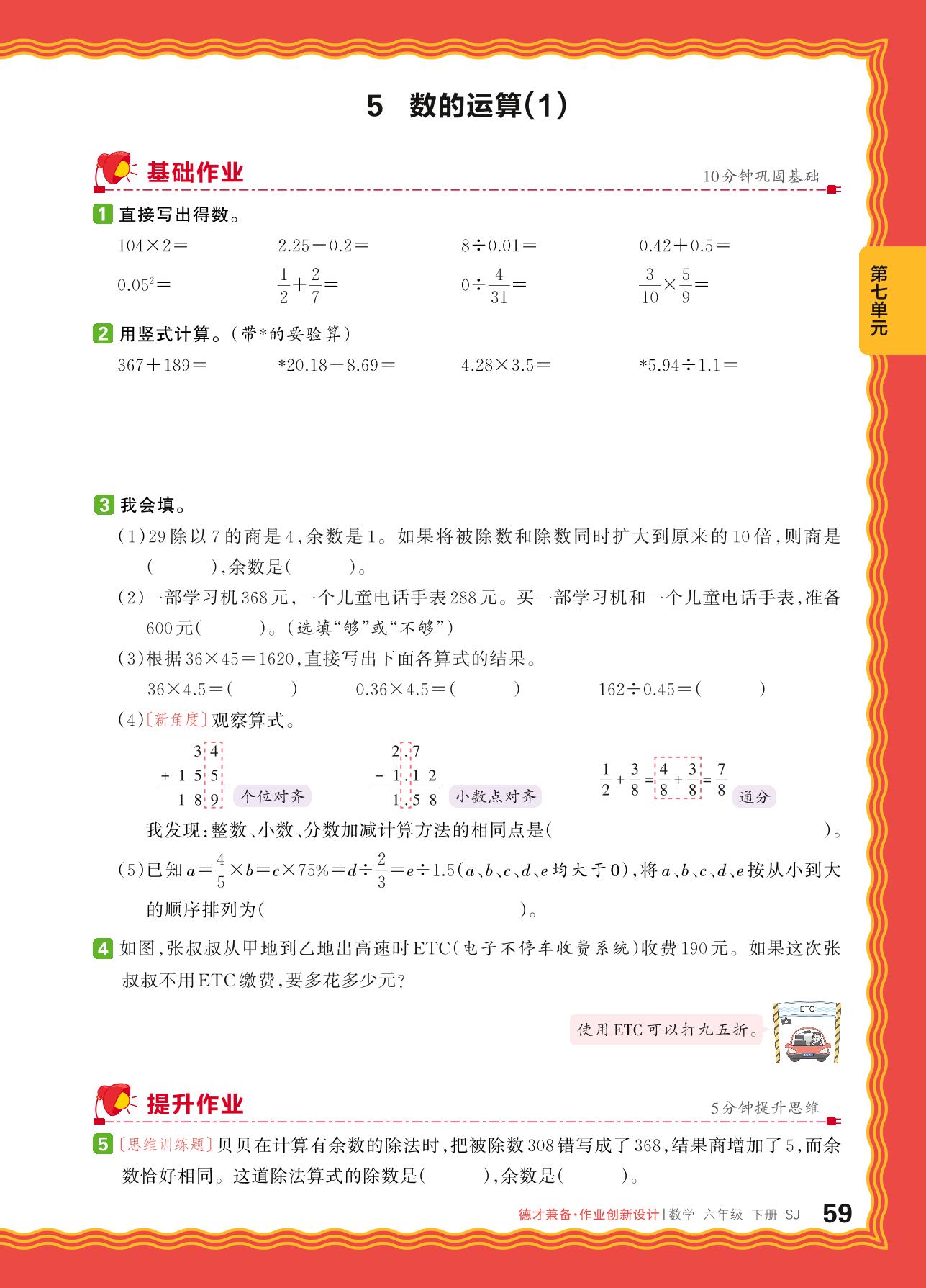 2024春下册六年级数学苏教版 第七单元 总复习(数与代数)——5. 数的运算(1)_R240123164607852