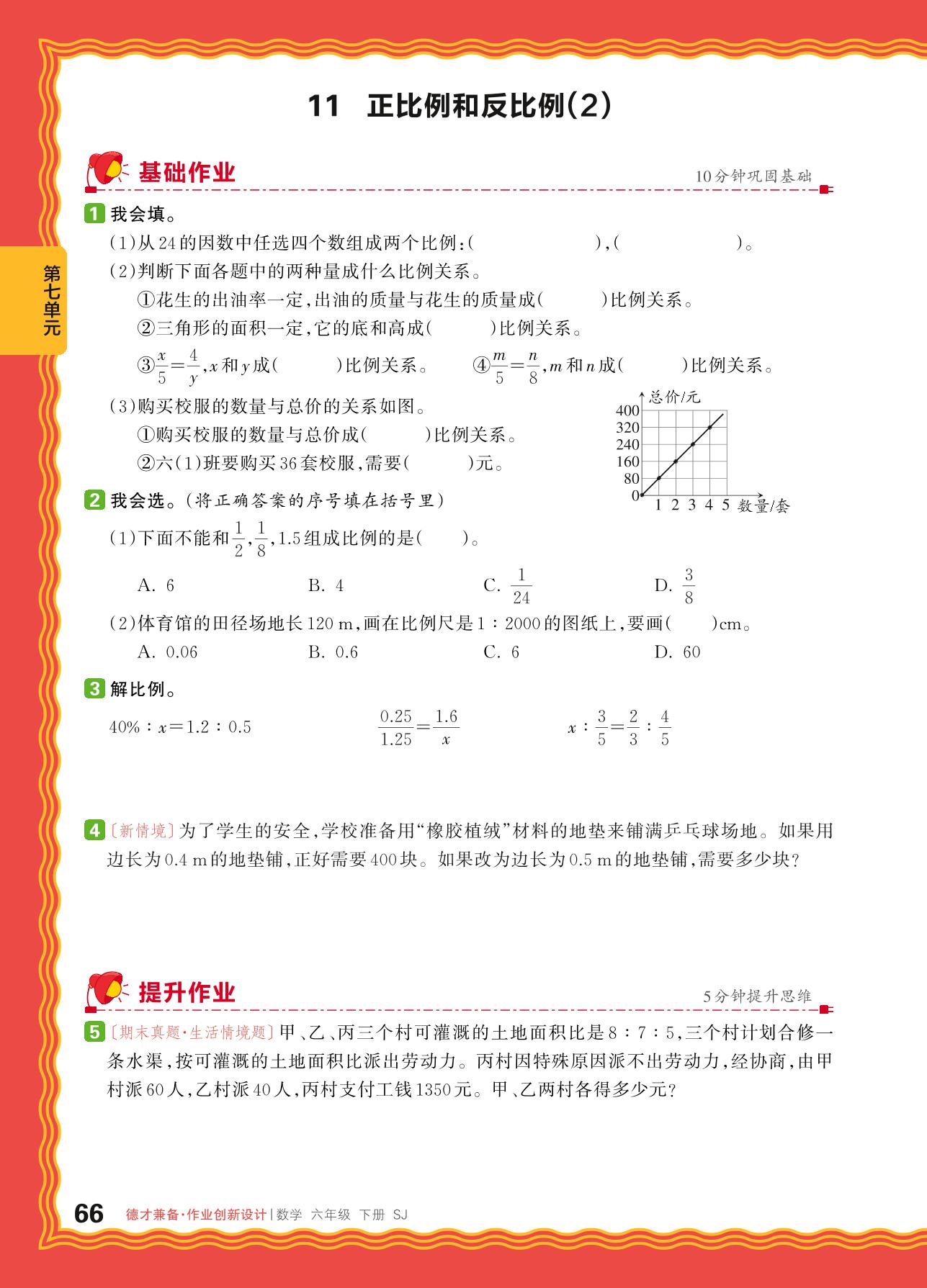 2024春下册六年级数学苏教版 第七单元 总复习(数与代数)——11. 正比例和反比例(2)
