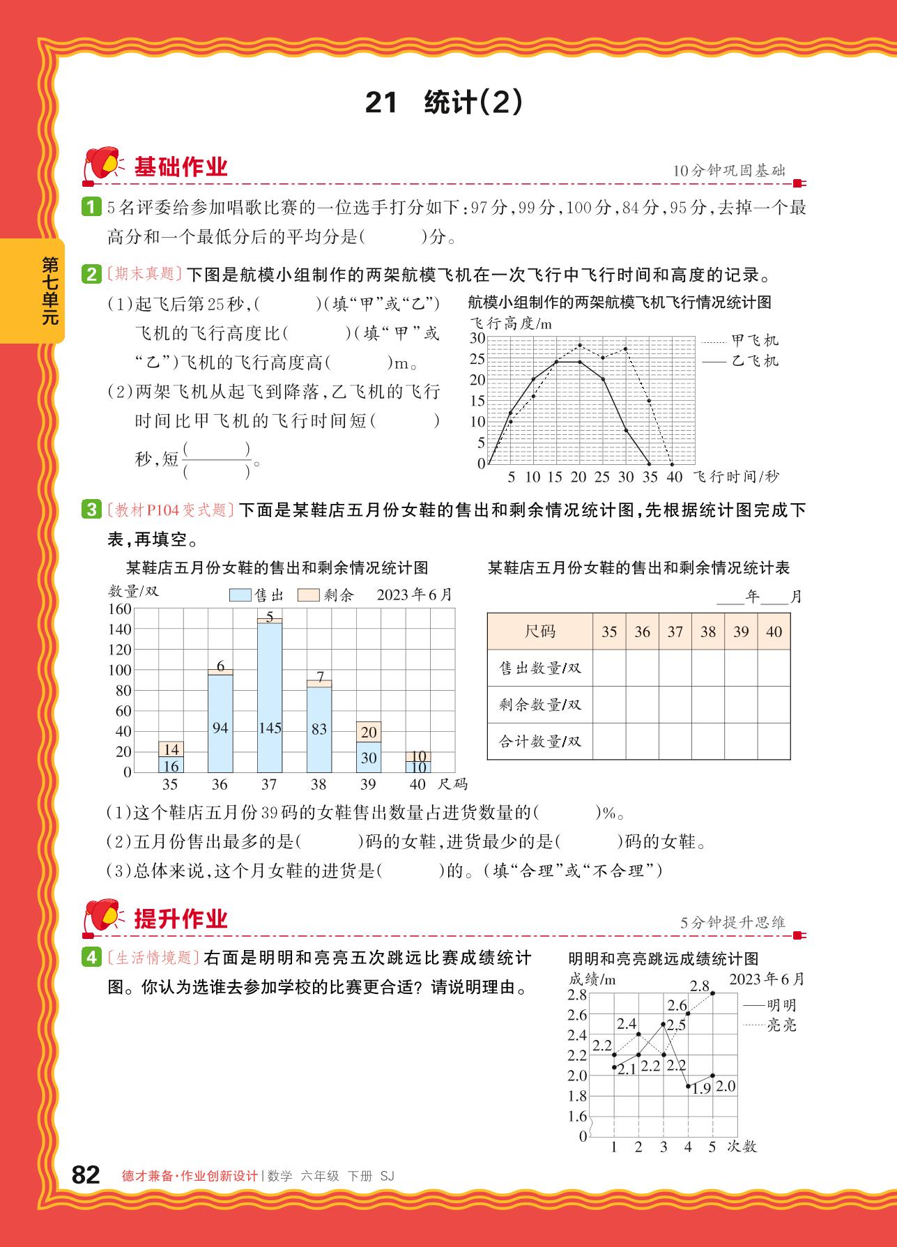 2024春下册六年级数学苏教版 第七单元 总复习(统计与可能性)——21. 统计(2)