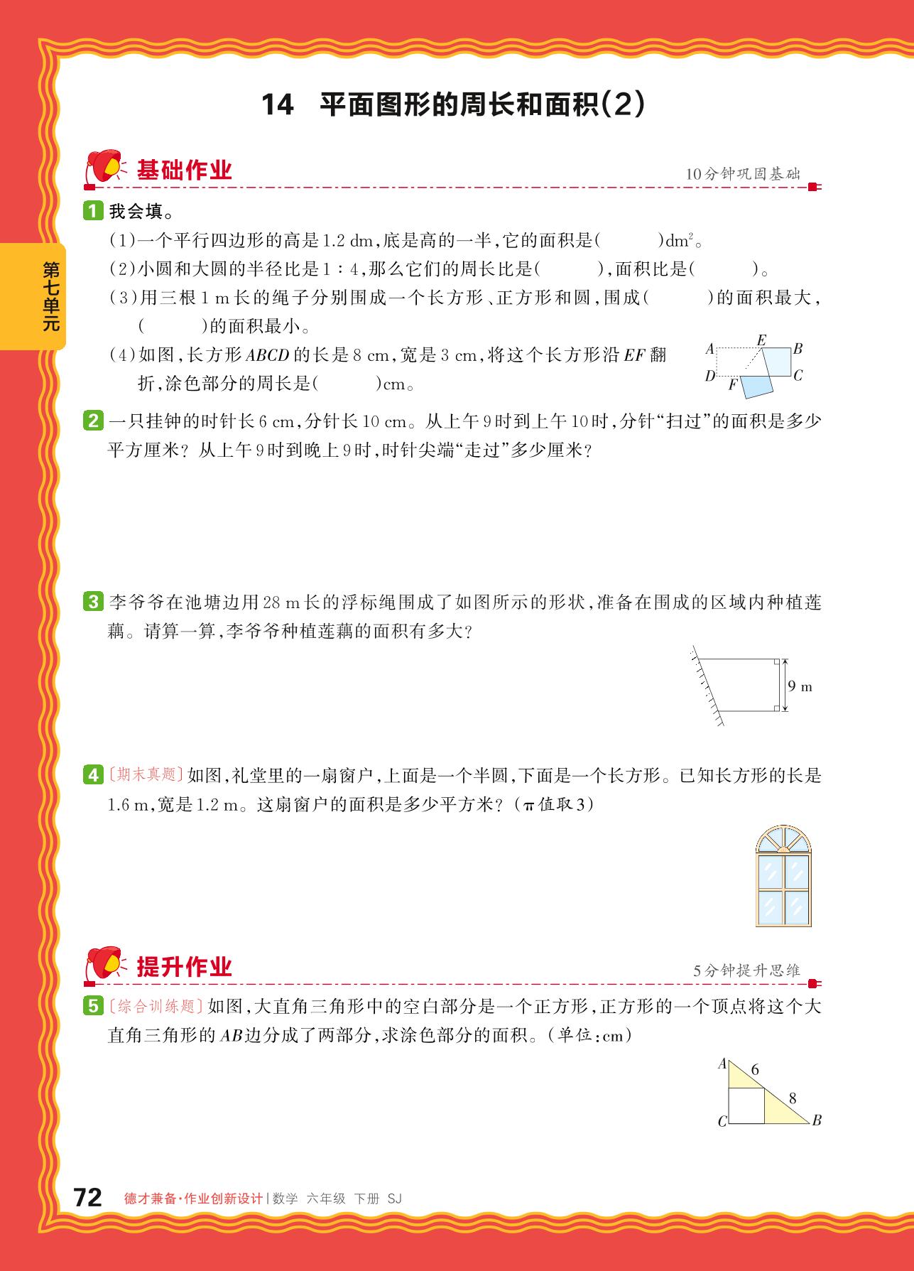 2024春下册六年级数学苏教版 第七单元 总复习(图形与几何)——14. 平面图形的周长和面积(2)