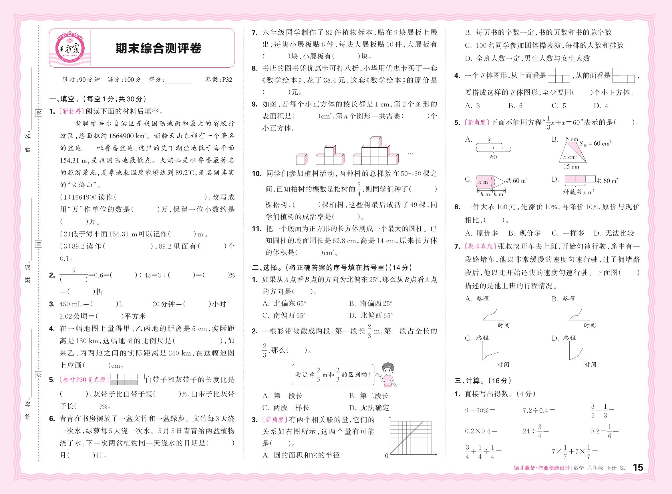 六年级数学苏教版下册期末卷