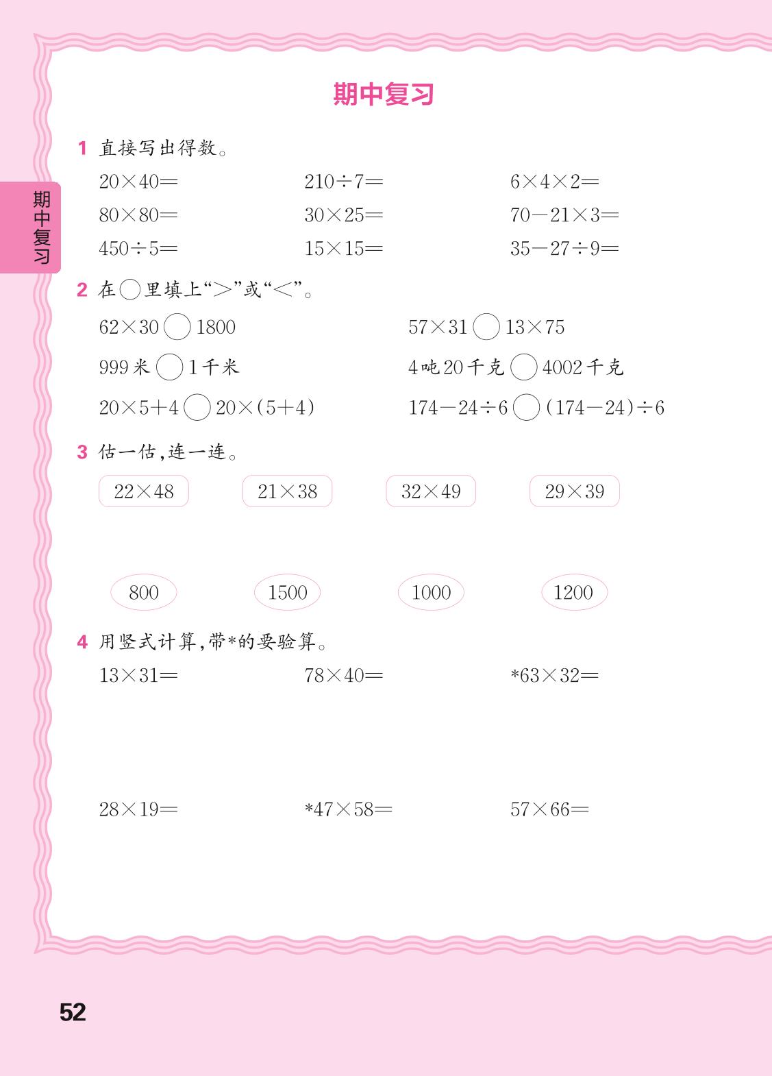 2024春下册三年级数学苏教版 期中复习(计算专练)