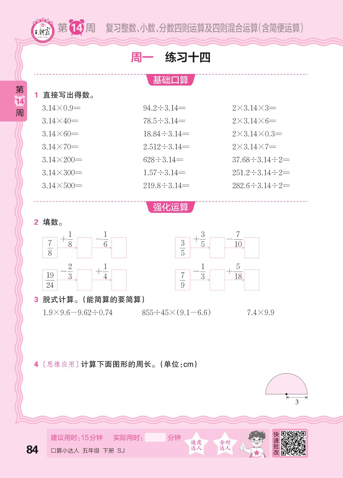 2024春下册五年级数学苏教版 口算计算专练 第14周