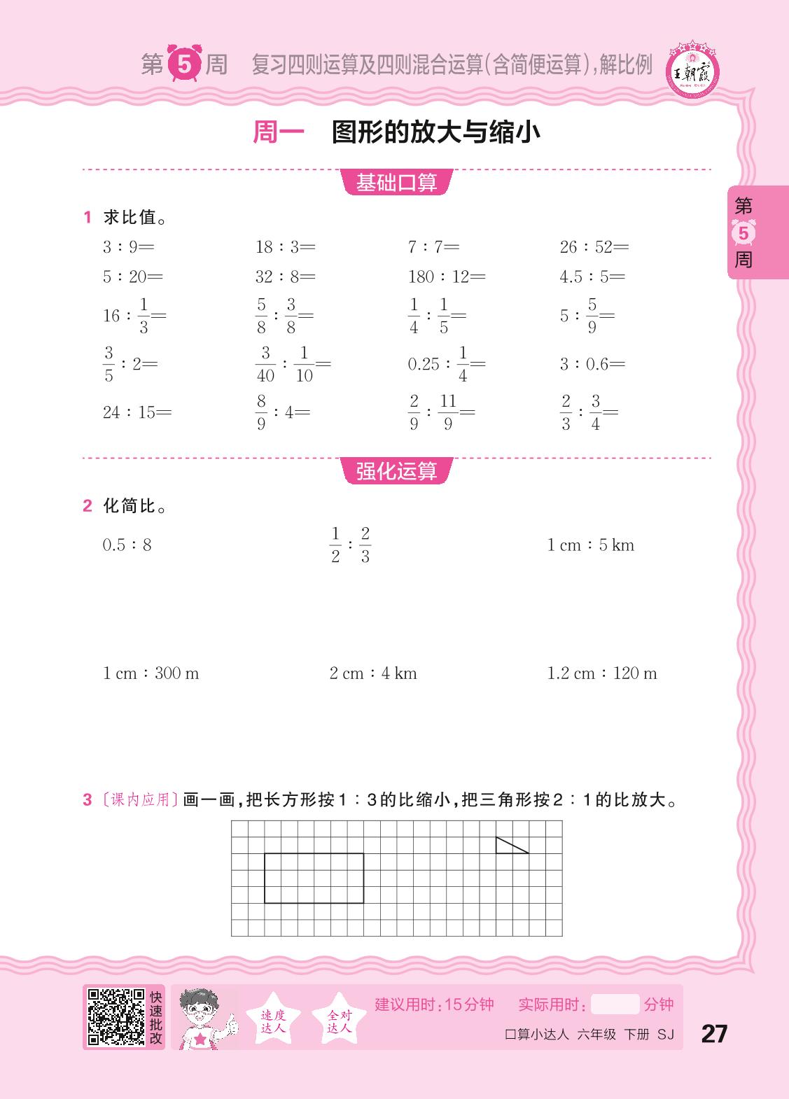 2024春下册六年级数学苏教版 口算计算专练 第5周