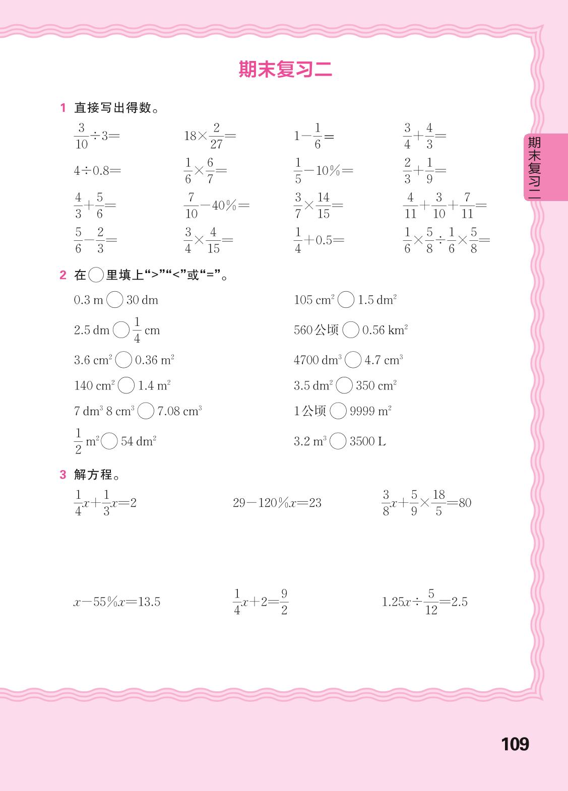 2024春下册六年级数学苏教版 期末复习二(计算专练)