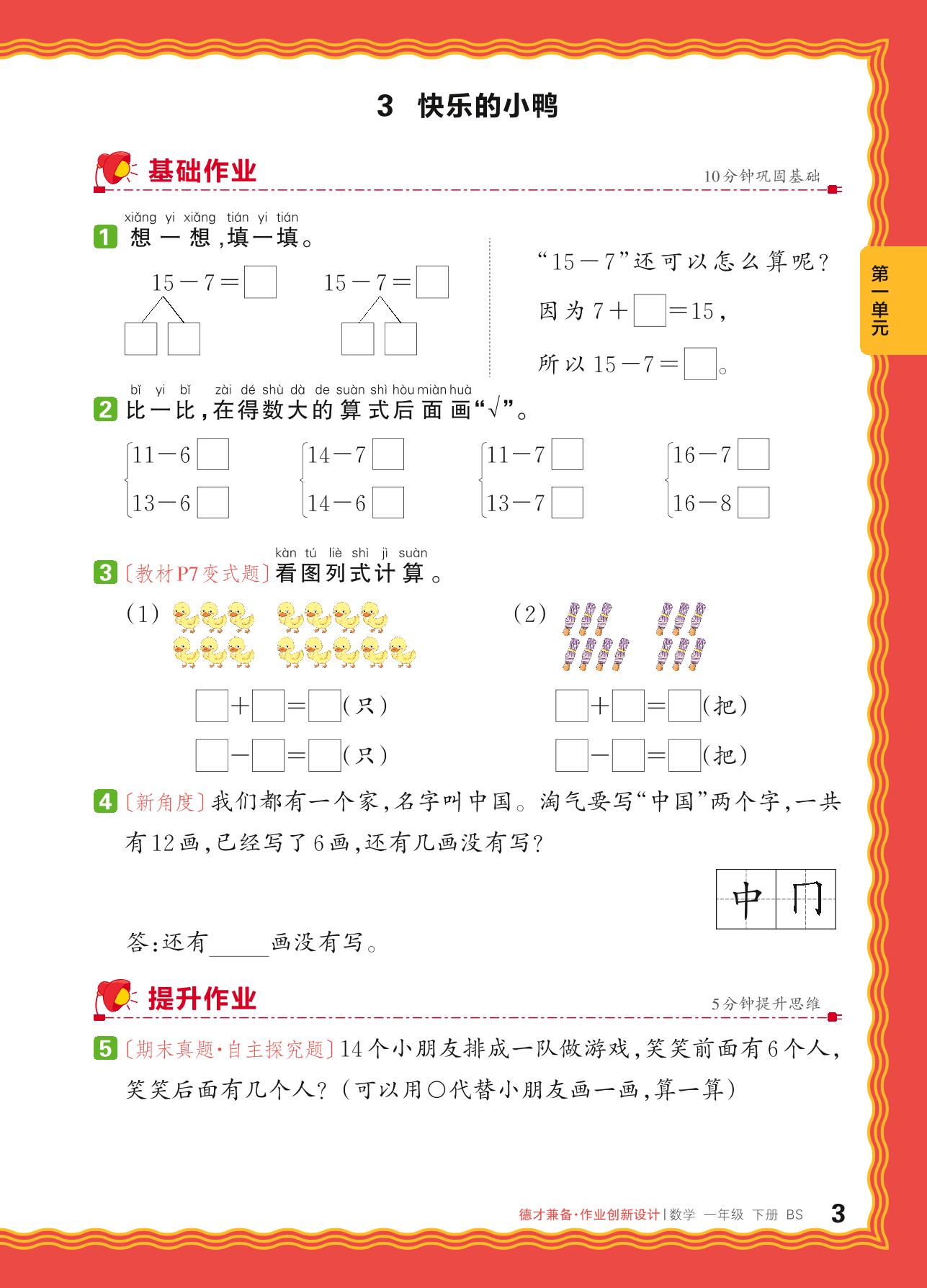 2024春下册一年级数学北师版 第一单元 加与减(一)——3. 快乐的小鸭_R240123171355473