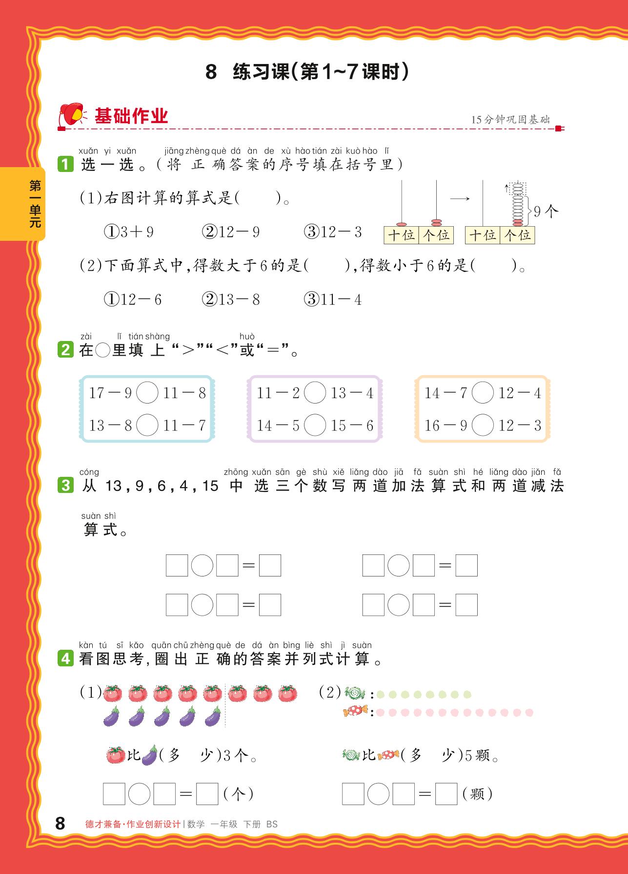 一年级数学北师版下册课时作业