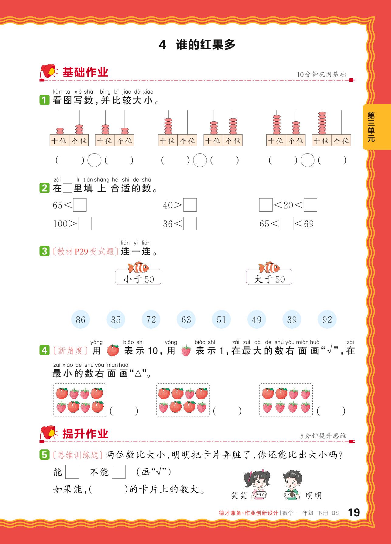 2024春下册一年级数学北师版 第三单元 生活中的数——4. 谁的红果多_R240123171401179