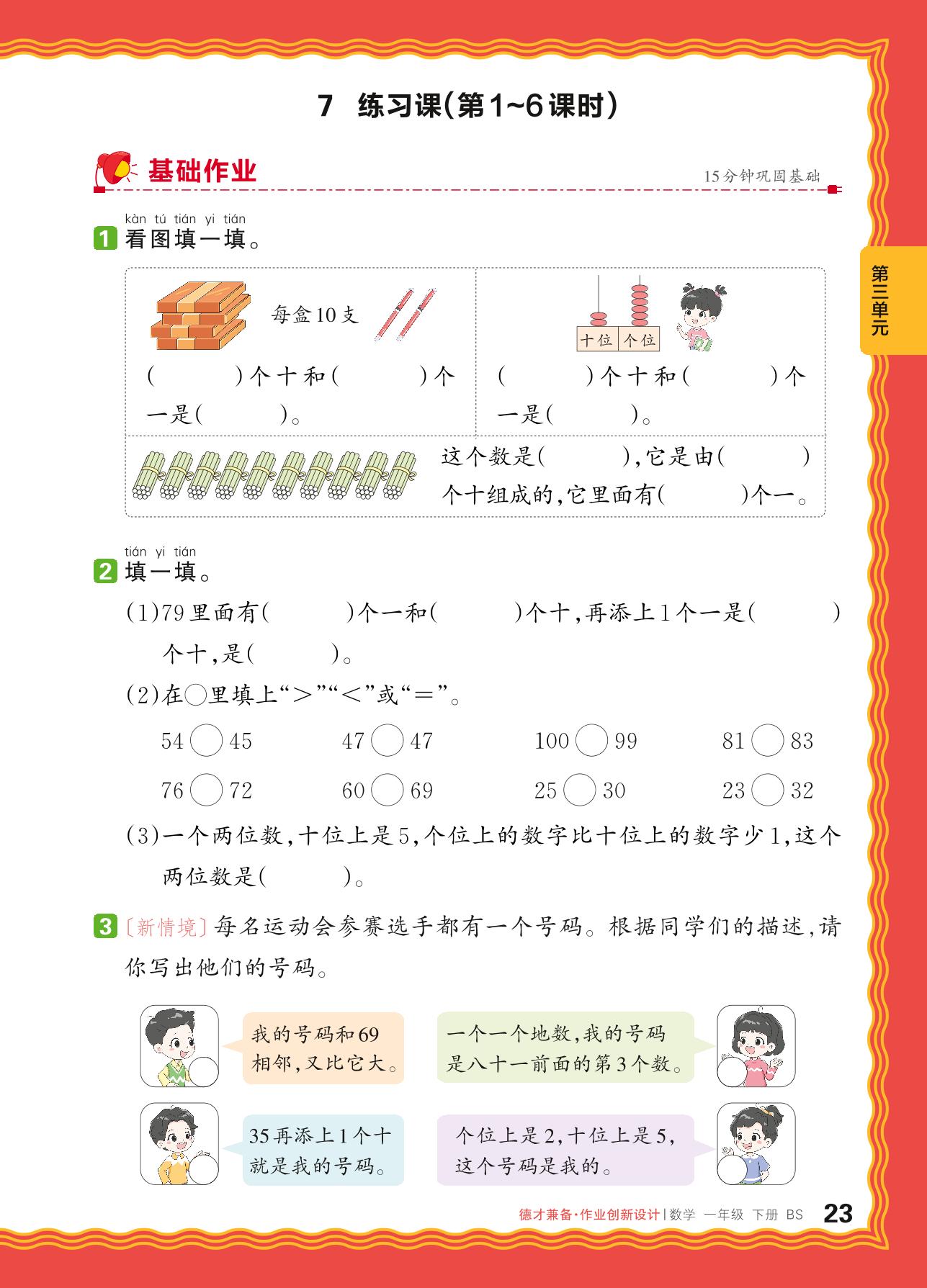 2024春下册一年级数学北师版 第三单元生活中的数练习课