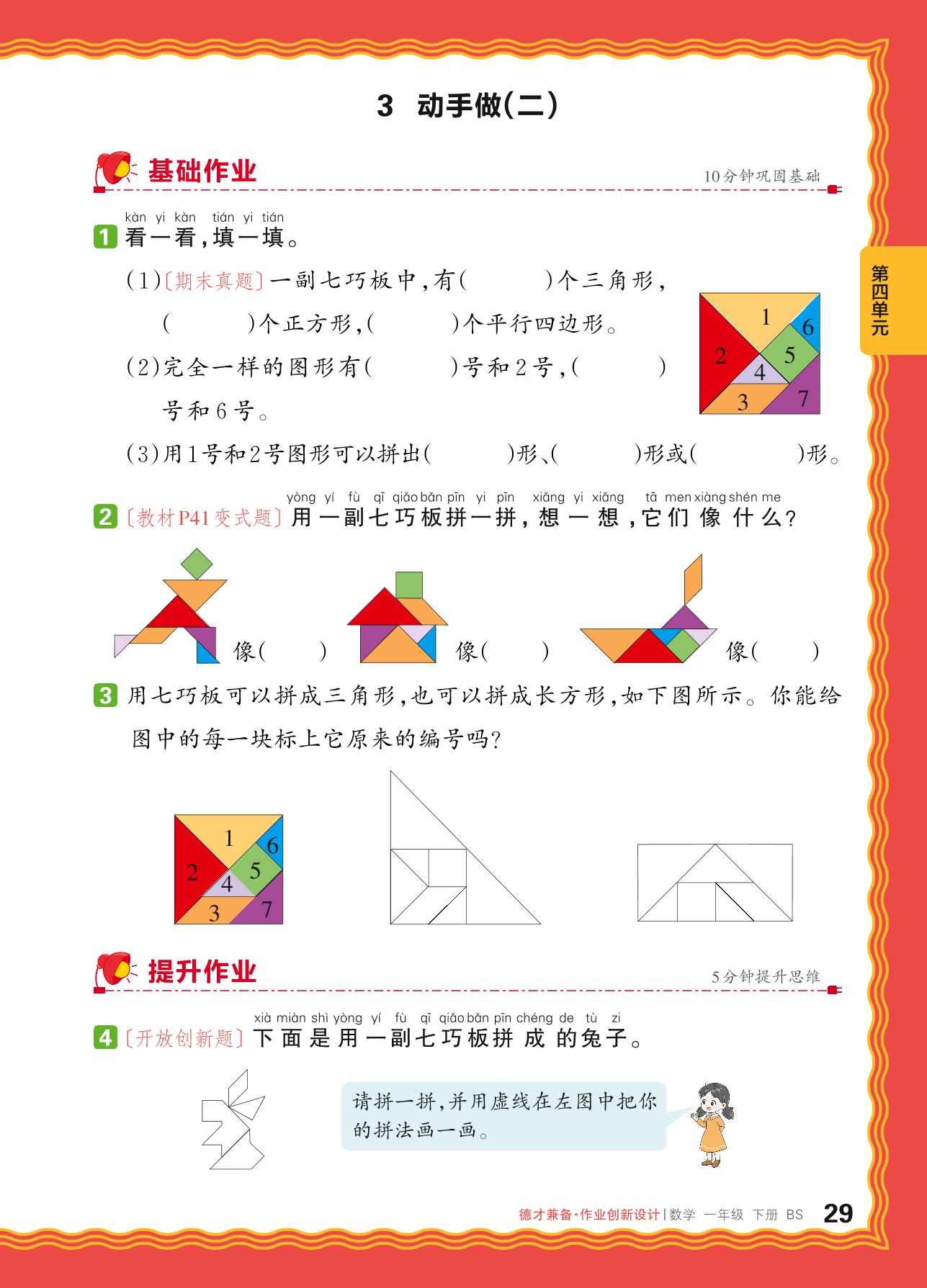 2024春下册一年级数学北师版 第四单元 有趣的图形——3. 动手做(二)_R240123171403739