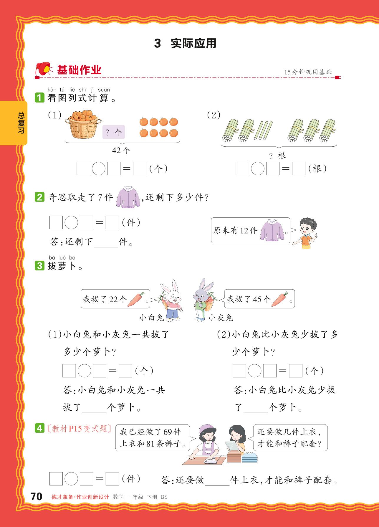 2024春下册一年级数学北师版 总复习——3. 实际应用