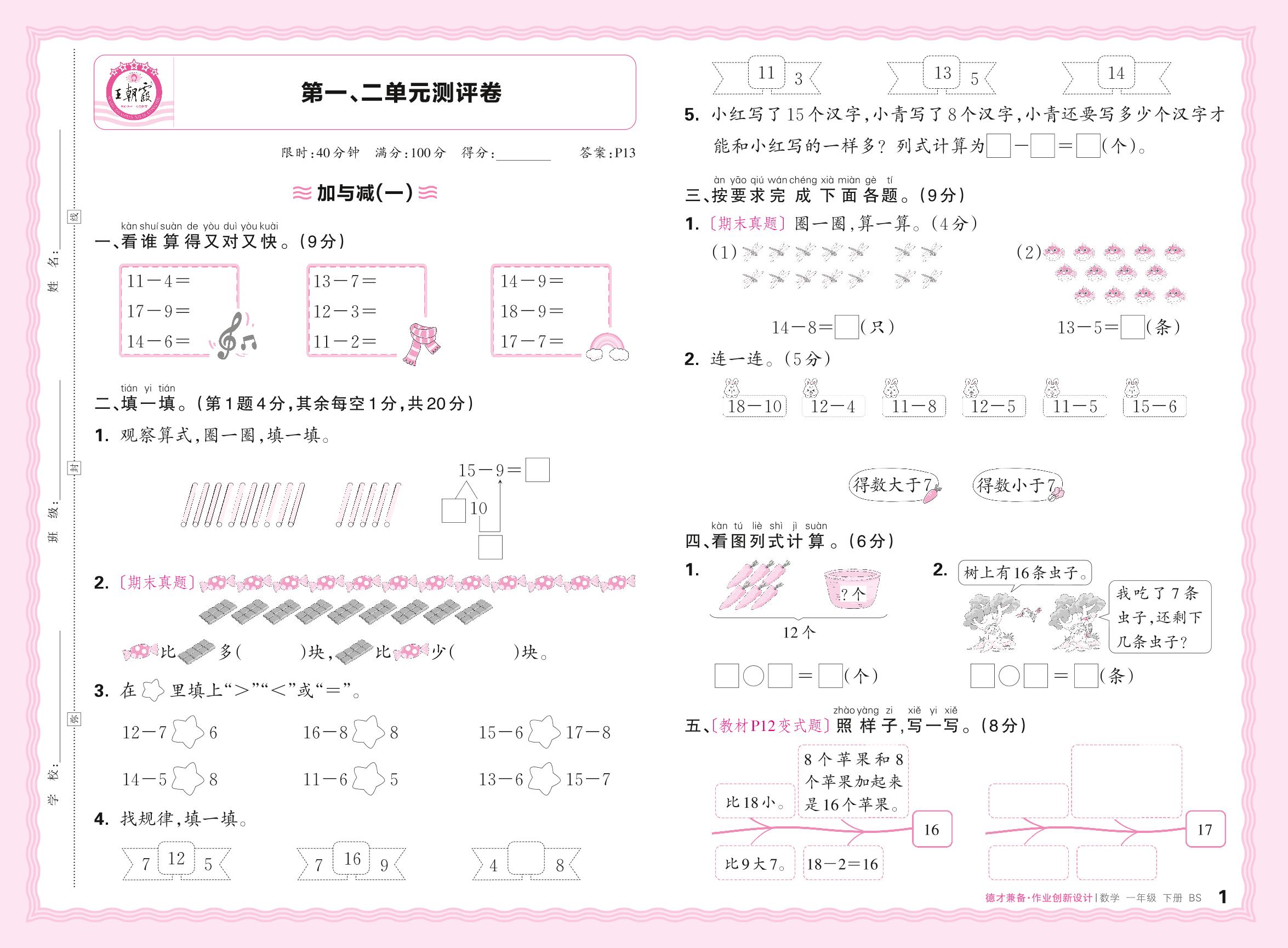 2024春下册一年级数学北师版 第一、二单元测评卷