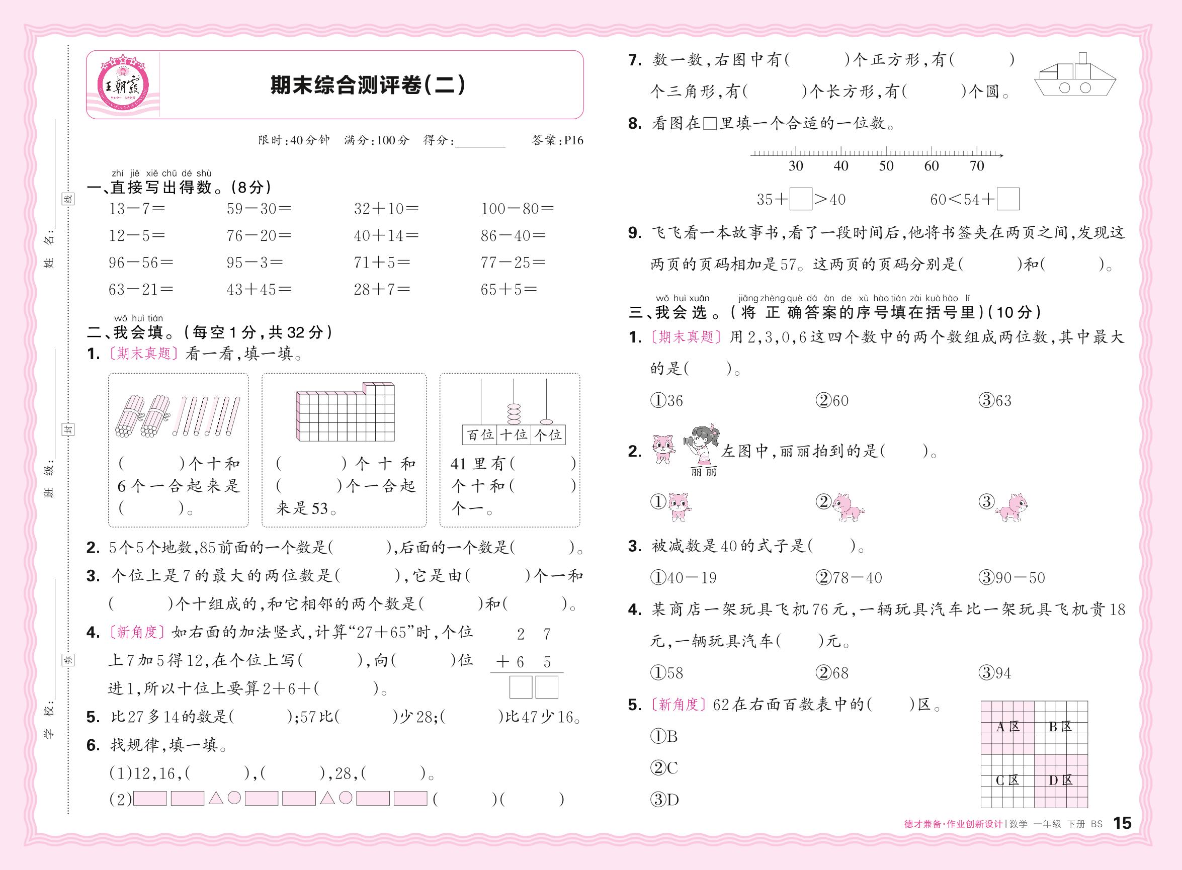 2024春下册一年级数学北师版 期末综合测评卷(二)