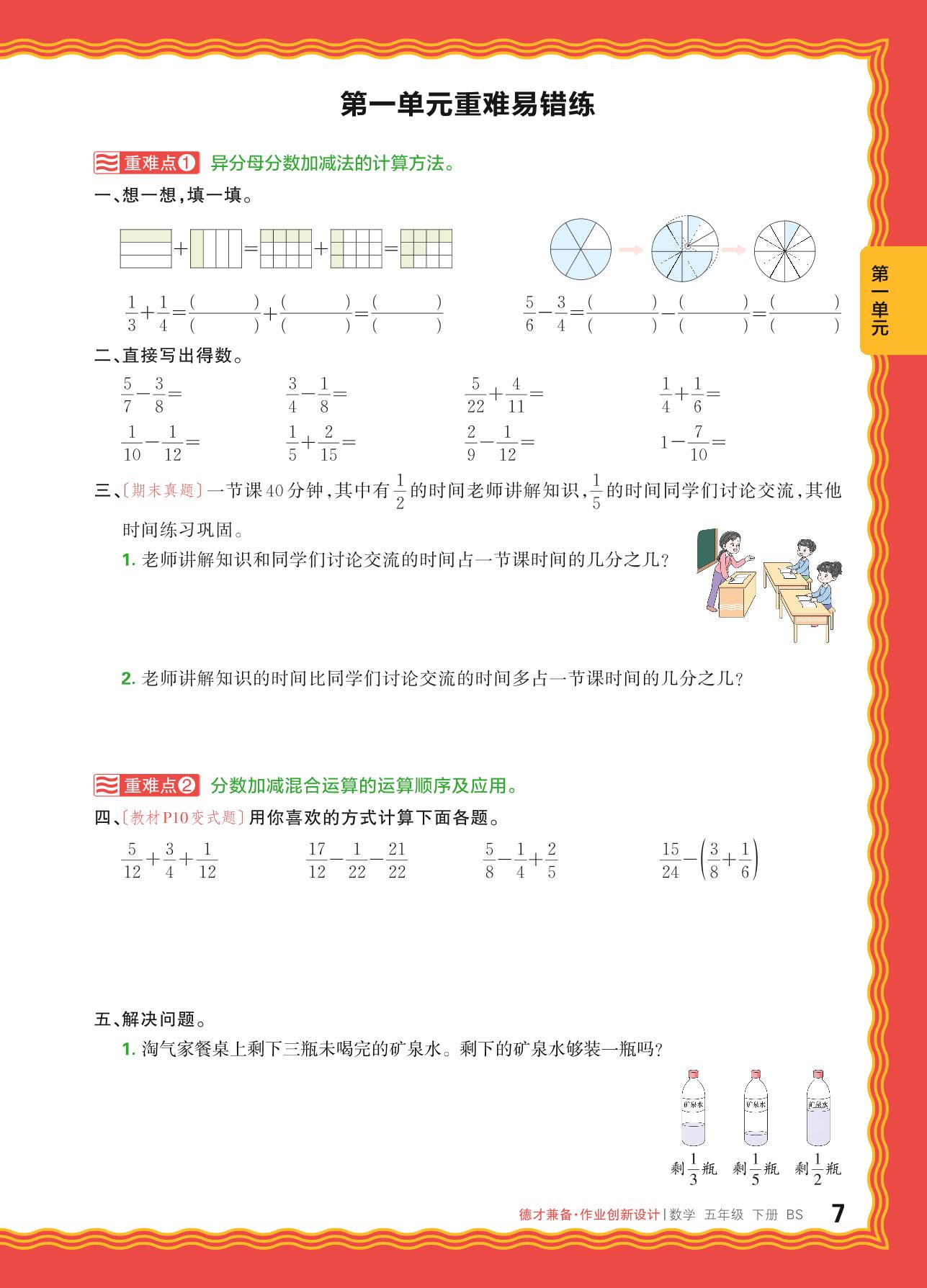 2024春下册五年级数学北师版 第一单元重难易错练