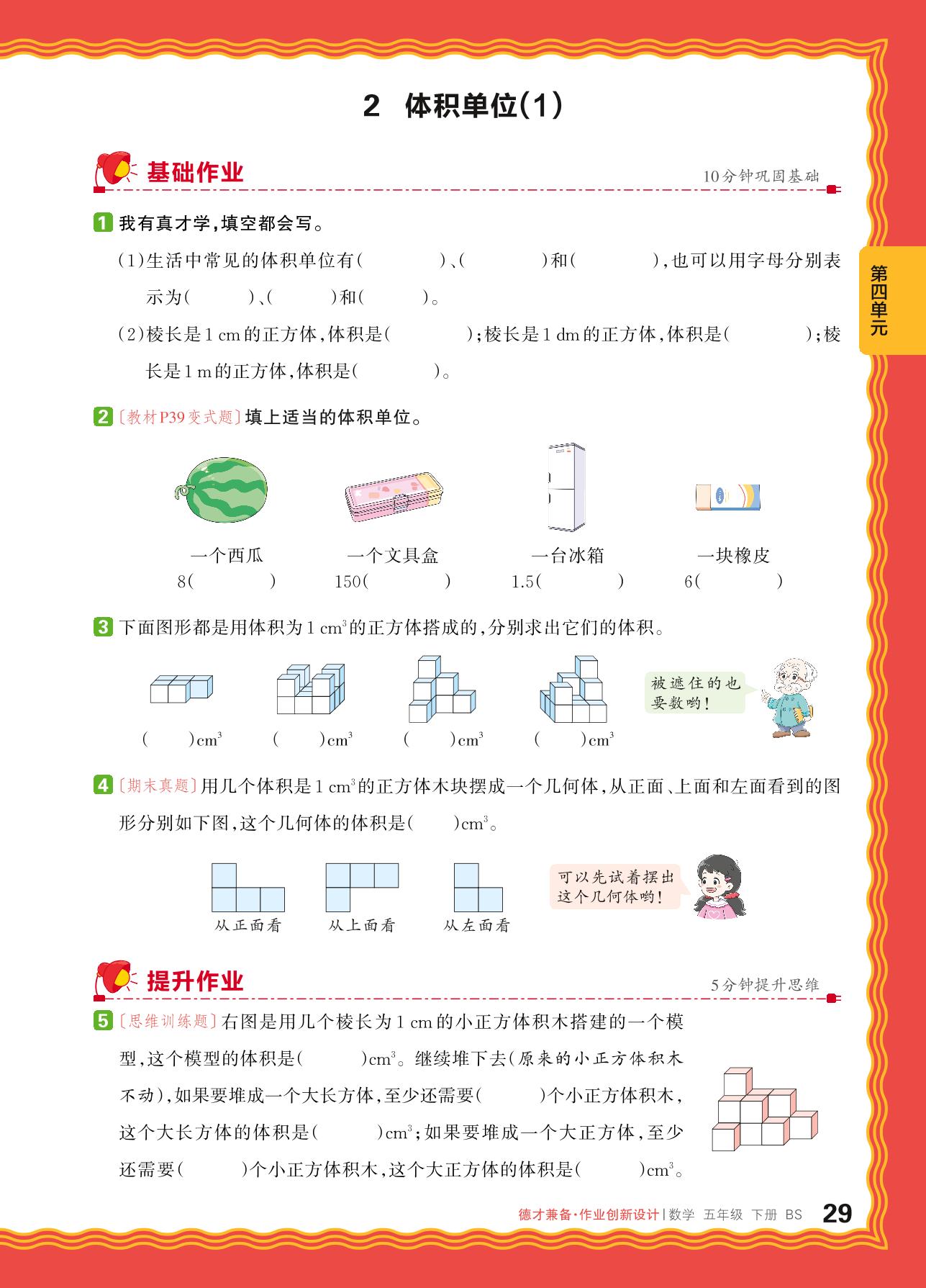 2024春下册五年级数学北师版 第四单元 长方体(二)——2. 体积单位(1)_R240123175101185
