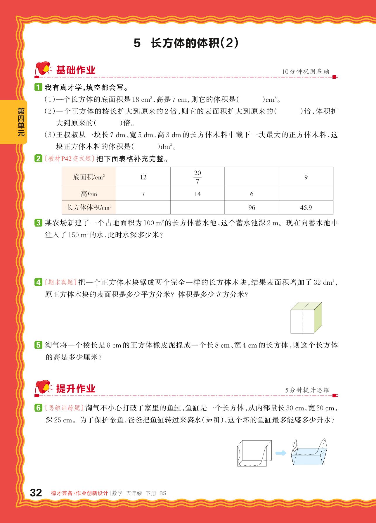 2024春下册五年级数学北师版 第四单元 长方体(二)——5. 长方体的体积(2)_R240123175102695