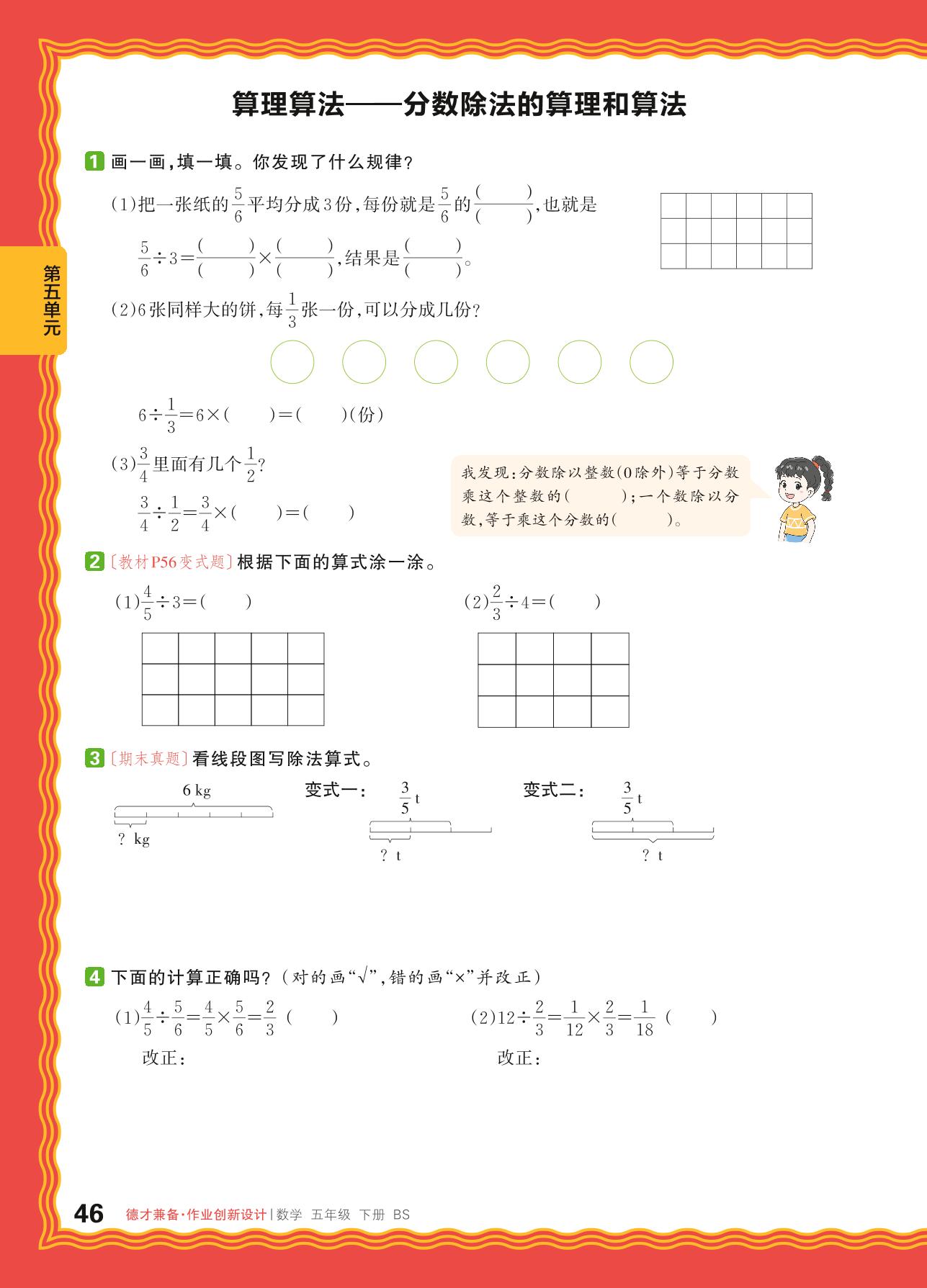 2024春下册五年级数学北师版 第五单元 分数除法——算理算法 分数除法的算理和算法