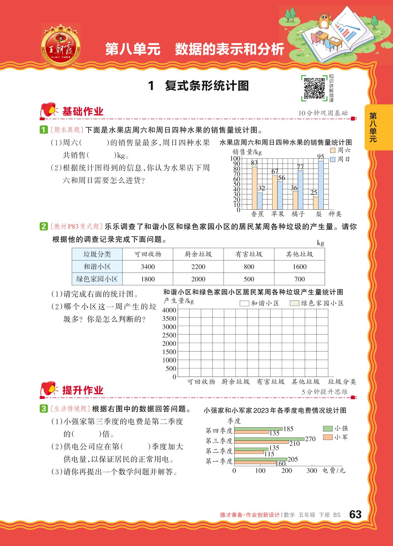 2024春下册五年级数学北师版 第八单元 数据的表示和分析——1. 复式条形统计图_R240123175111470