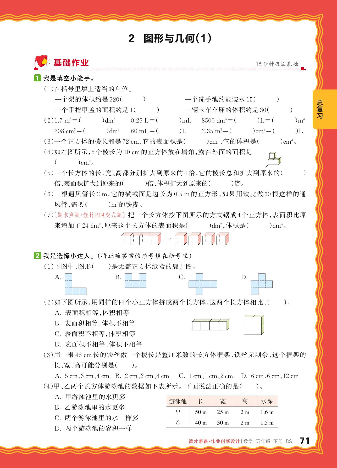 2024春下册五年级数学北师版 总复习——2. 图形与几何(1)