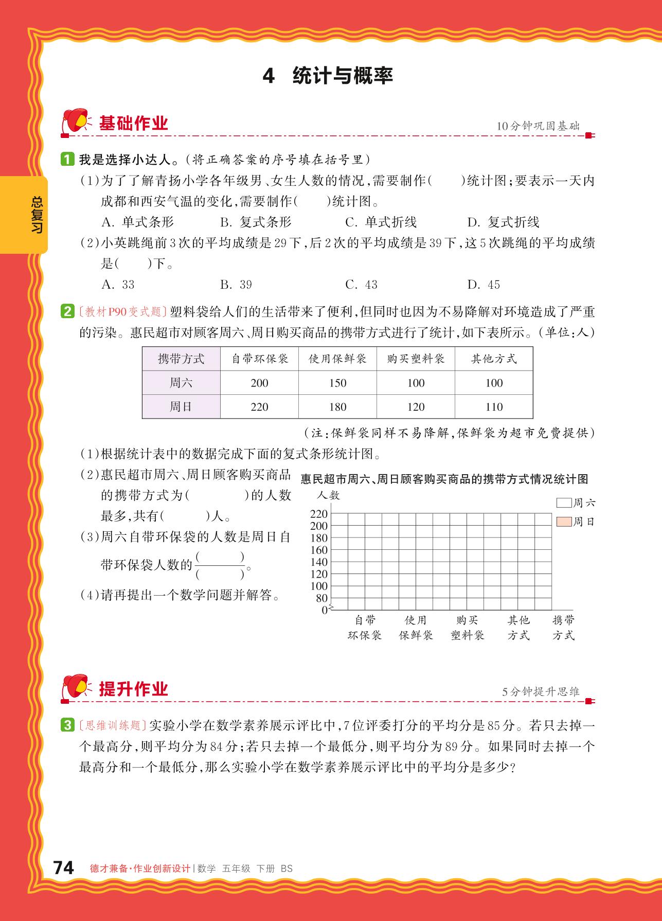 2024春下册五年级数学北师版 总复习——4. 统计与概率
