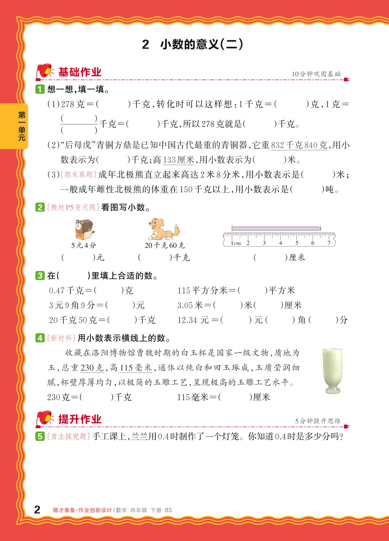 2024春下册四年级数学北师版 第一单元 小数的意义和加减法——2. 小数的意义(二)_R240124090129007