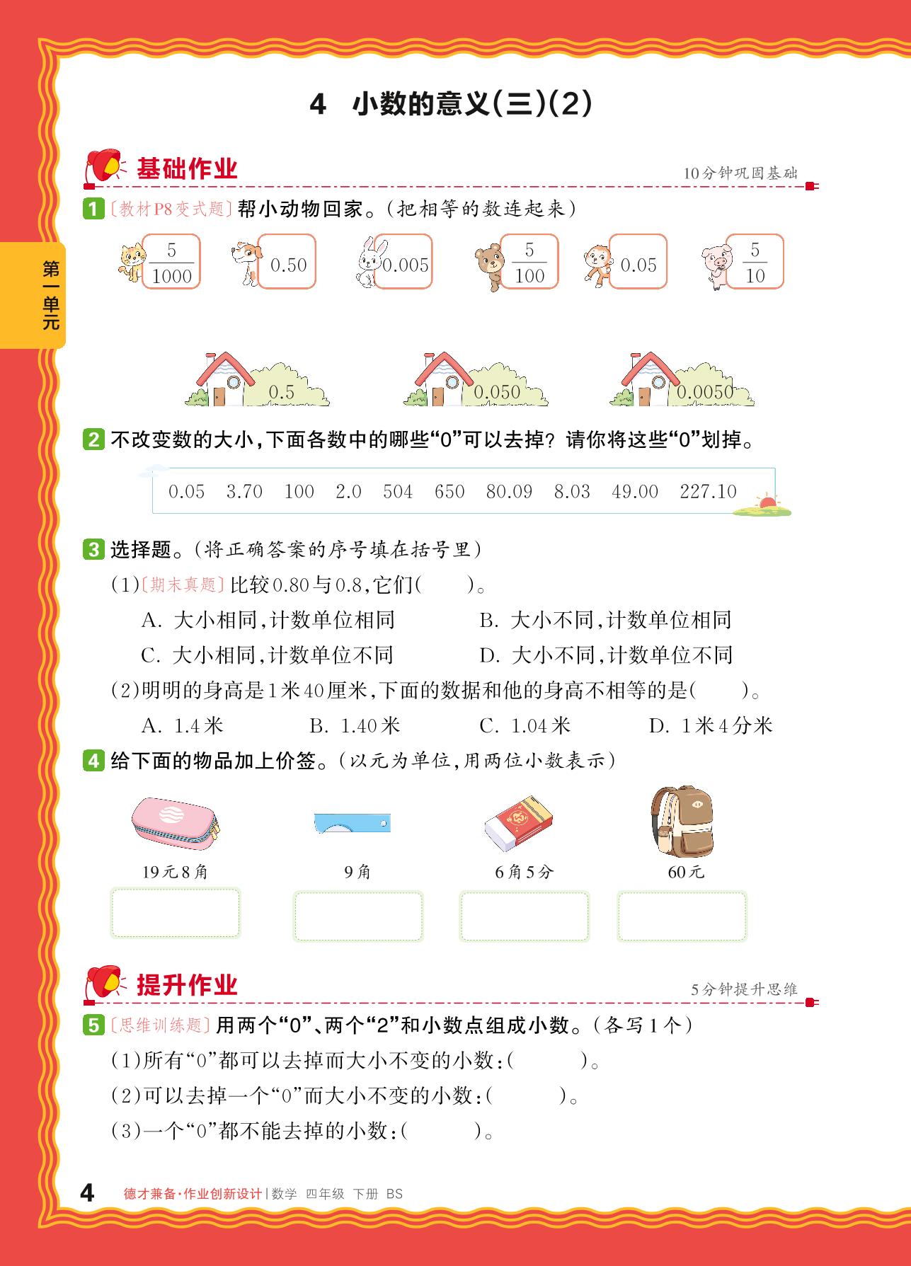 2024春下册四年级数学北师版 第一单元 小数的意义和加减法——4. 小数的意义(三)(2)_R240124090129310