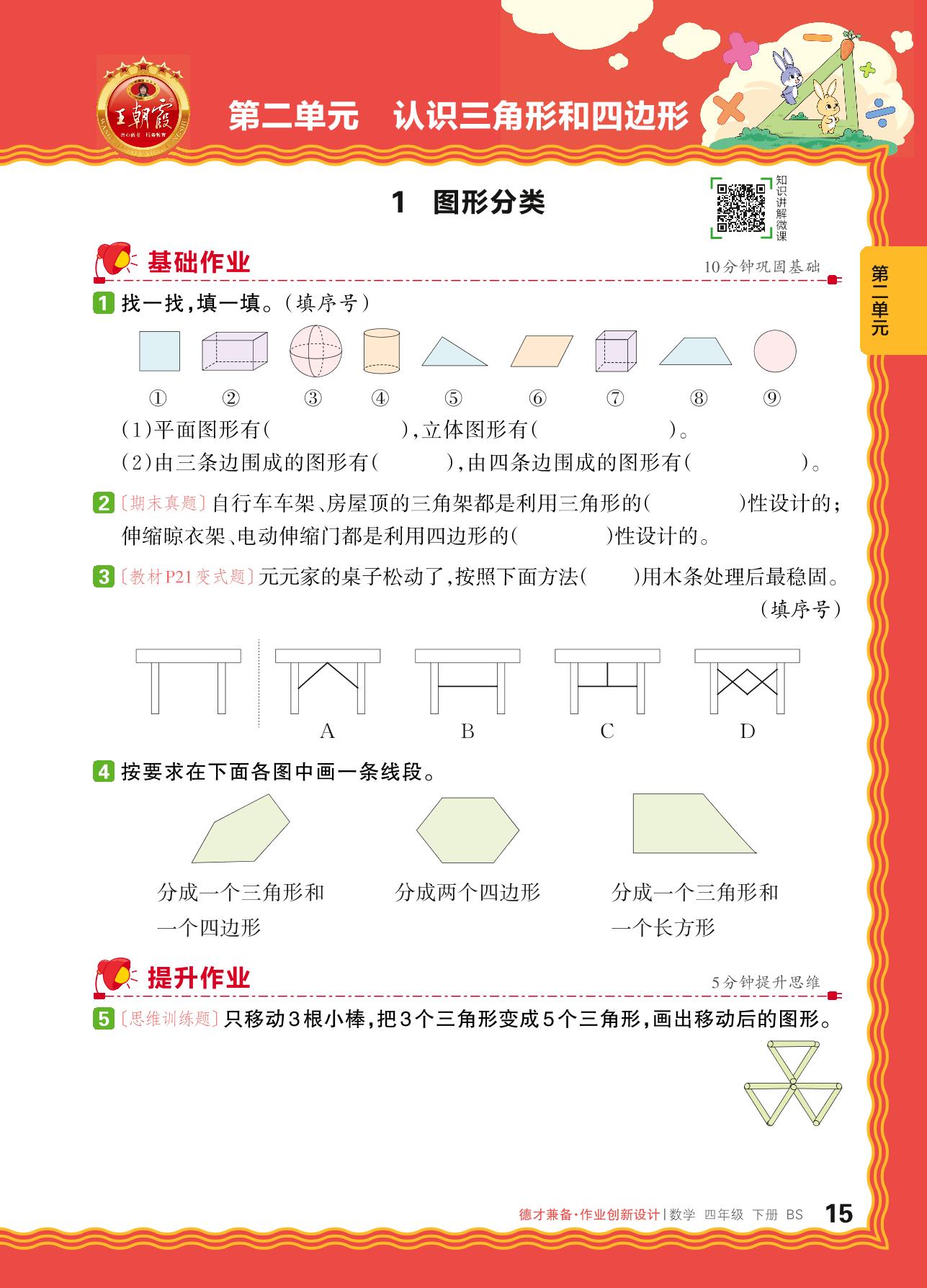 2024春下册四年级数学北师版 第二单元 认识三角形和四边形——1. 图形分类_R240124090133728