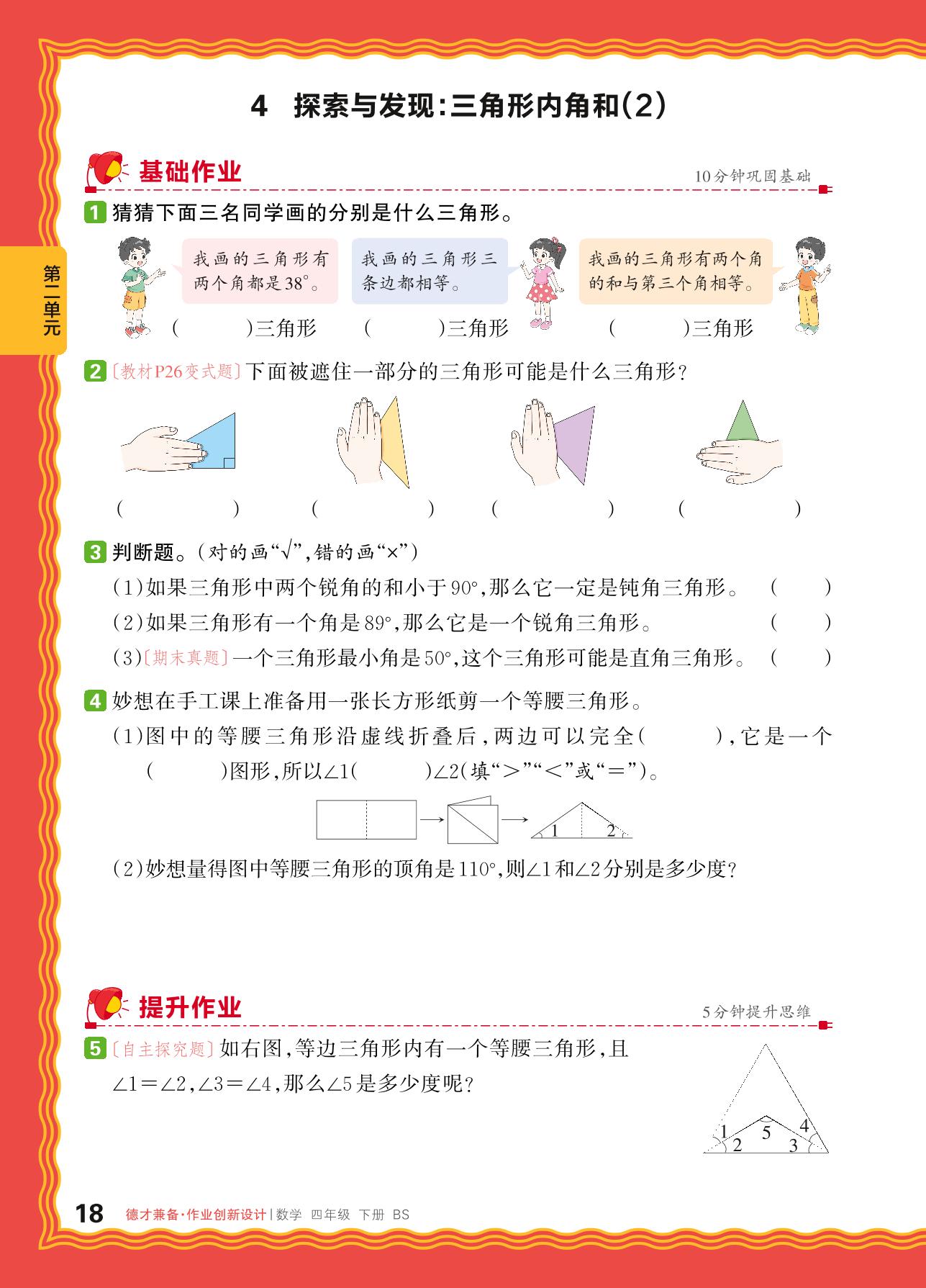 2024春下册四年级数学北师版 第二单元 认识三角形和四边形——4. 探索与发现:三角形内角和(2)_R240124090134647