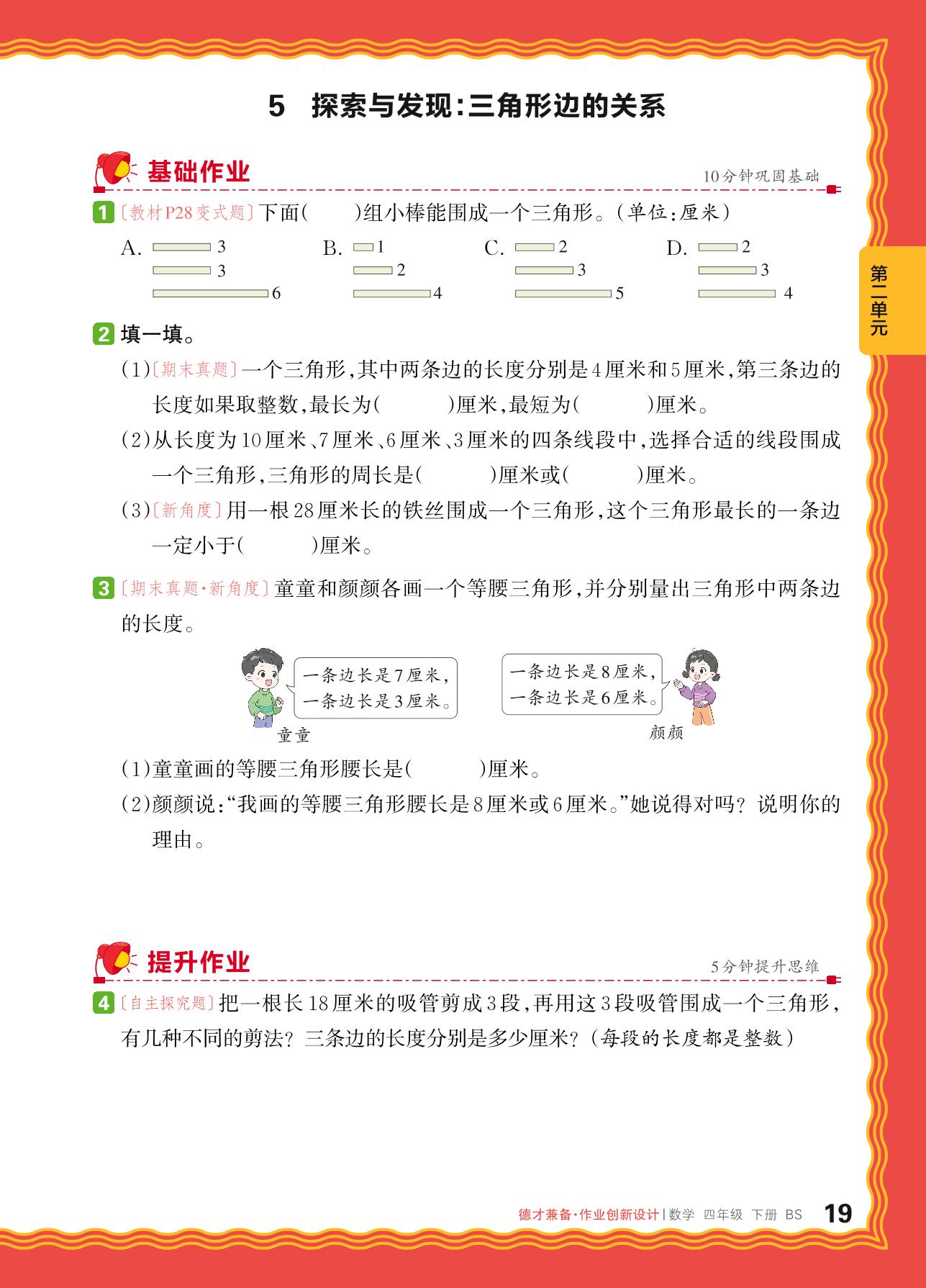 2024春下册四年级数学北师版 第二单元 认识三角形和四边形——5. 探索与发现:三角形边的关系_R240124090134549