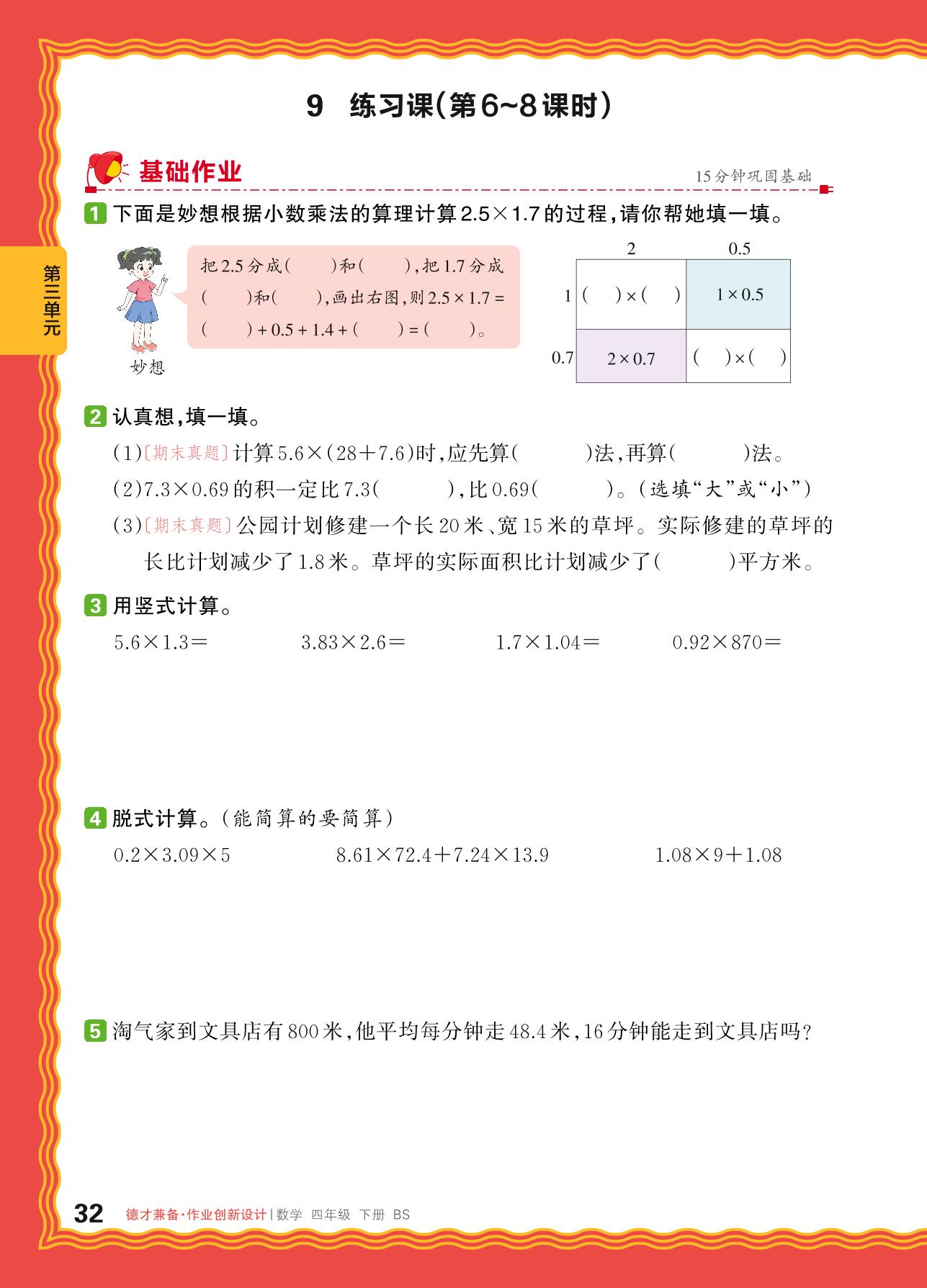 2024春下册四年级数学北师版 第三单元 小数乘法——包装、蚕丝、手拉手练习课_R240124090137592