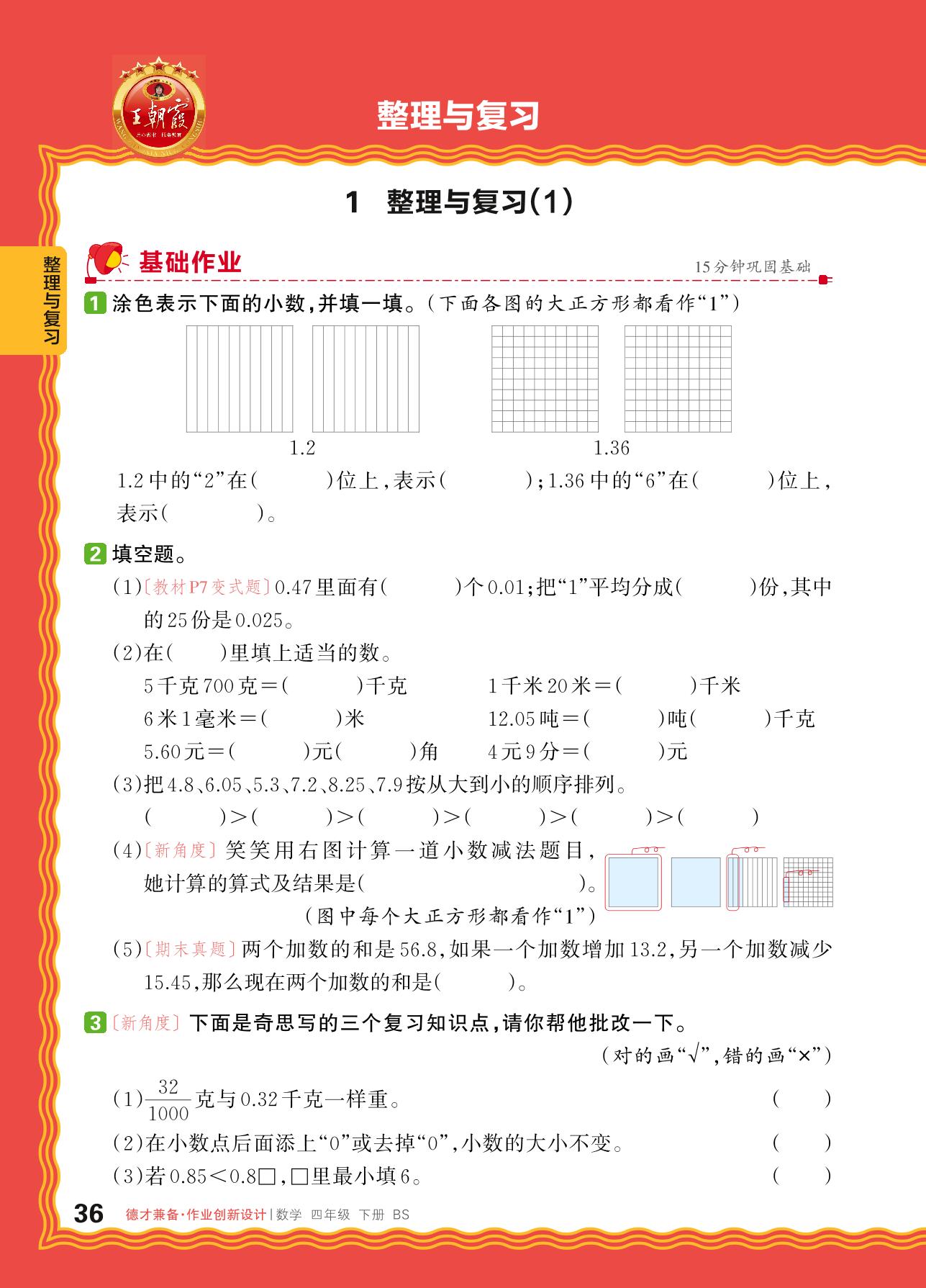 2024春下册四年级数学北师版 整理与复习_R240124090139212