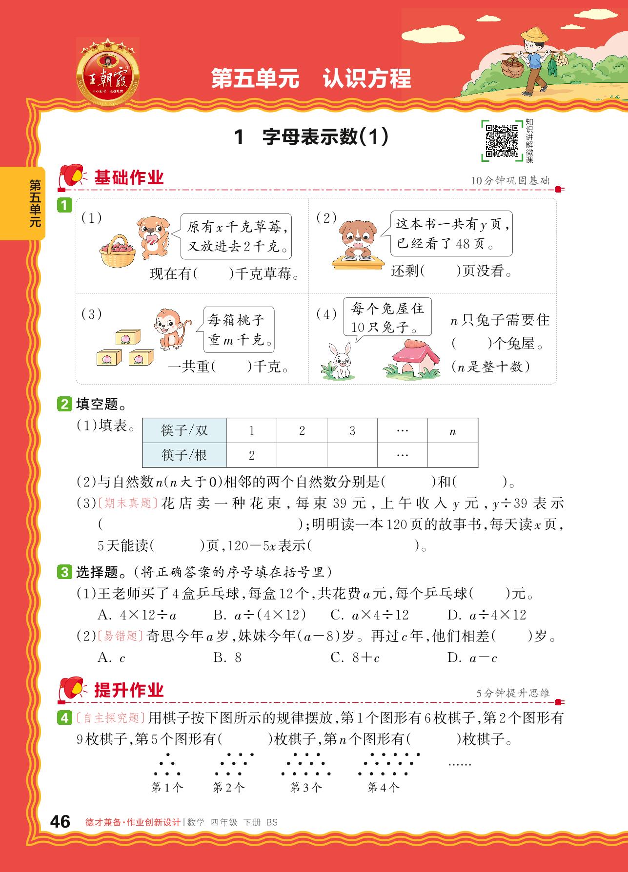 2024春下册四年级数学北师版 第五单元 认识方程——1. 字母表示数(1)_R240124090141337