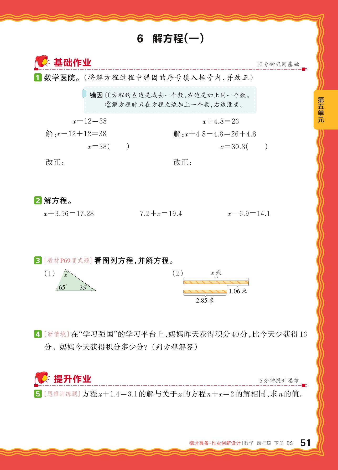 2024春下册四年级数学北师版 第五单元 认识方程——6. 解方程(一)