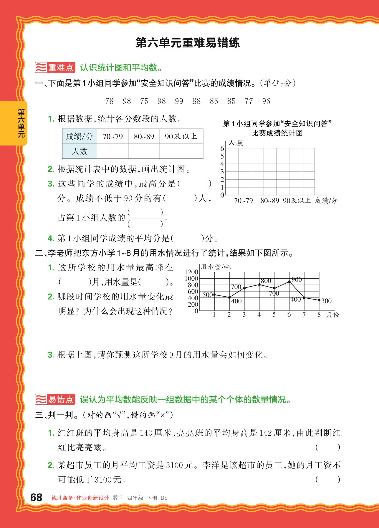 2024春下册四年级数学北师版 第六单元重难易错练