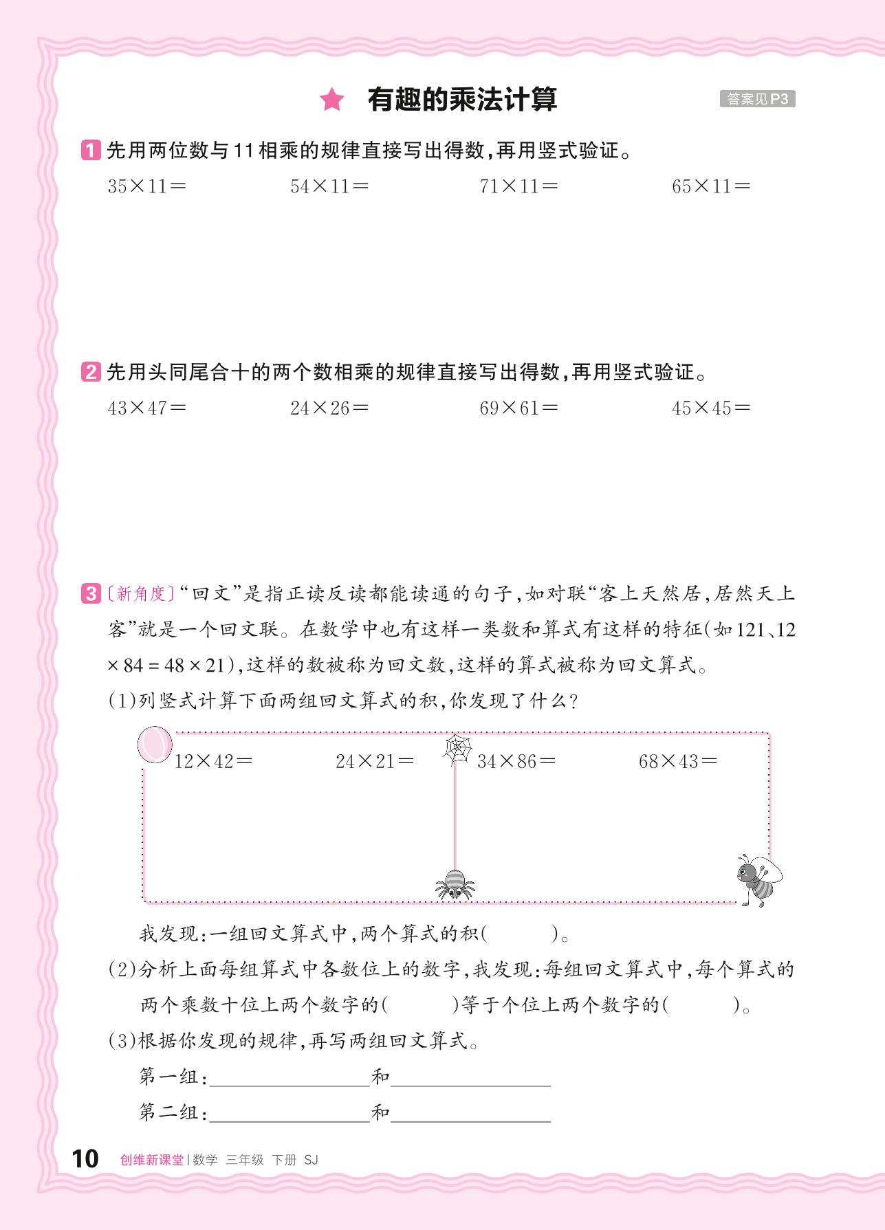 2024春下册三年级数学苏教版 第一单元 两位数乘两位数——有趣的乘法计算