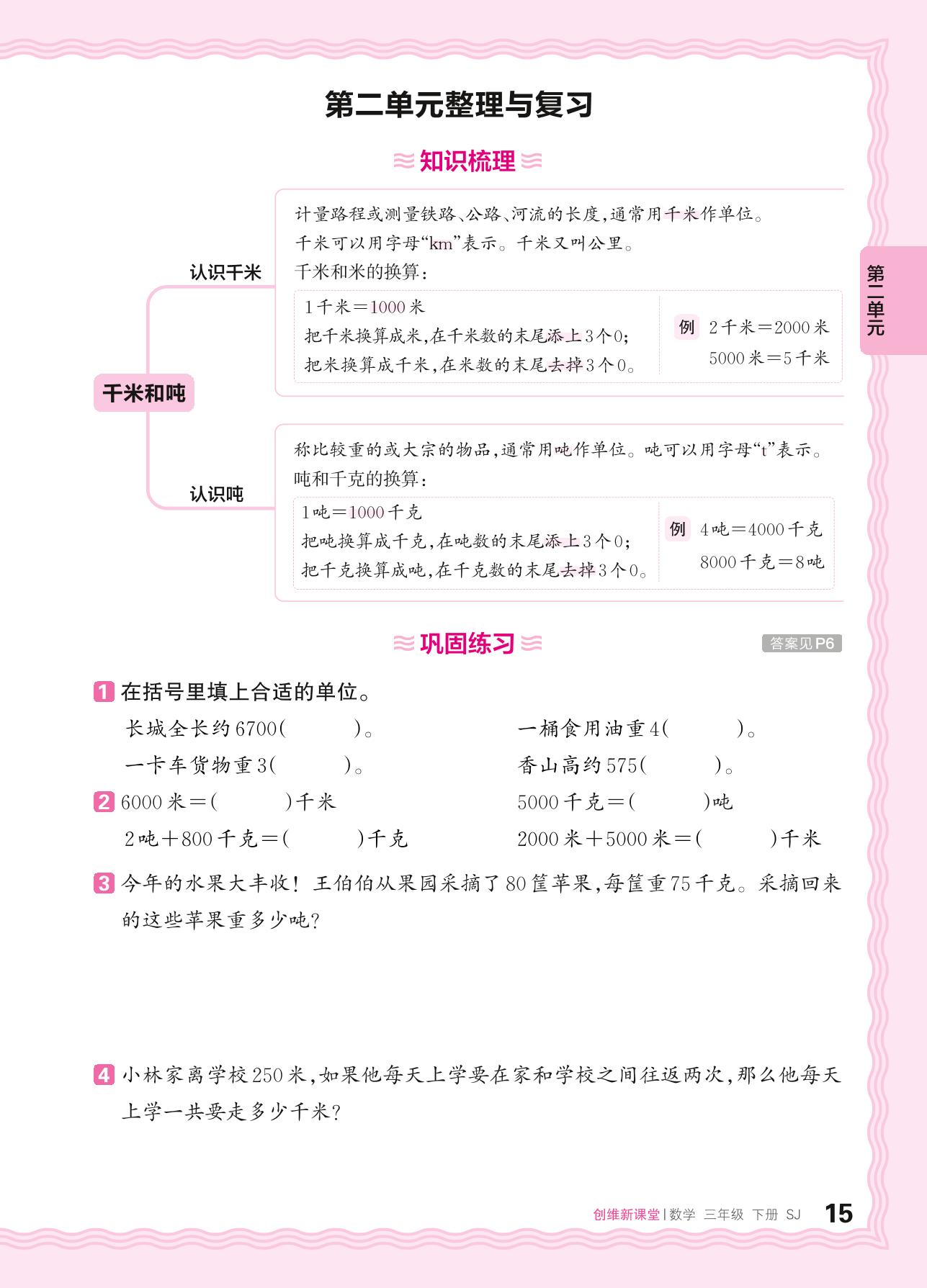 2024春下册三年级数学苏教版 第二单元整理与复习