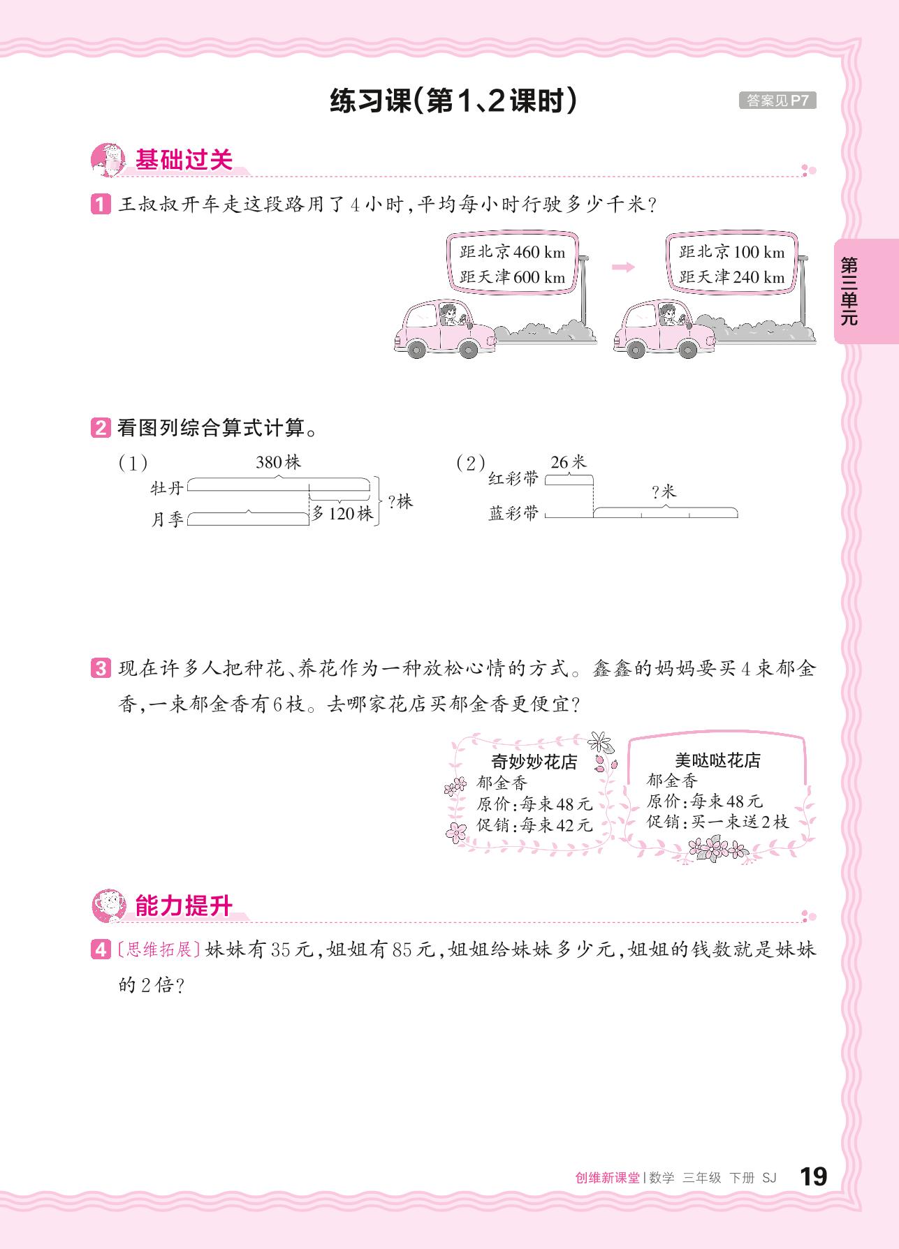 2024春下册三年级数学苏教版 第三单元 解决问题的策略——从问题出发分析和解决问题练习课