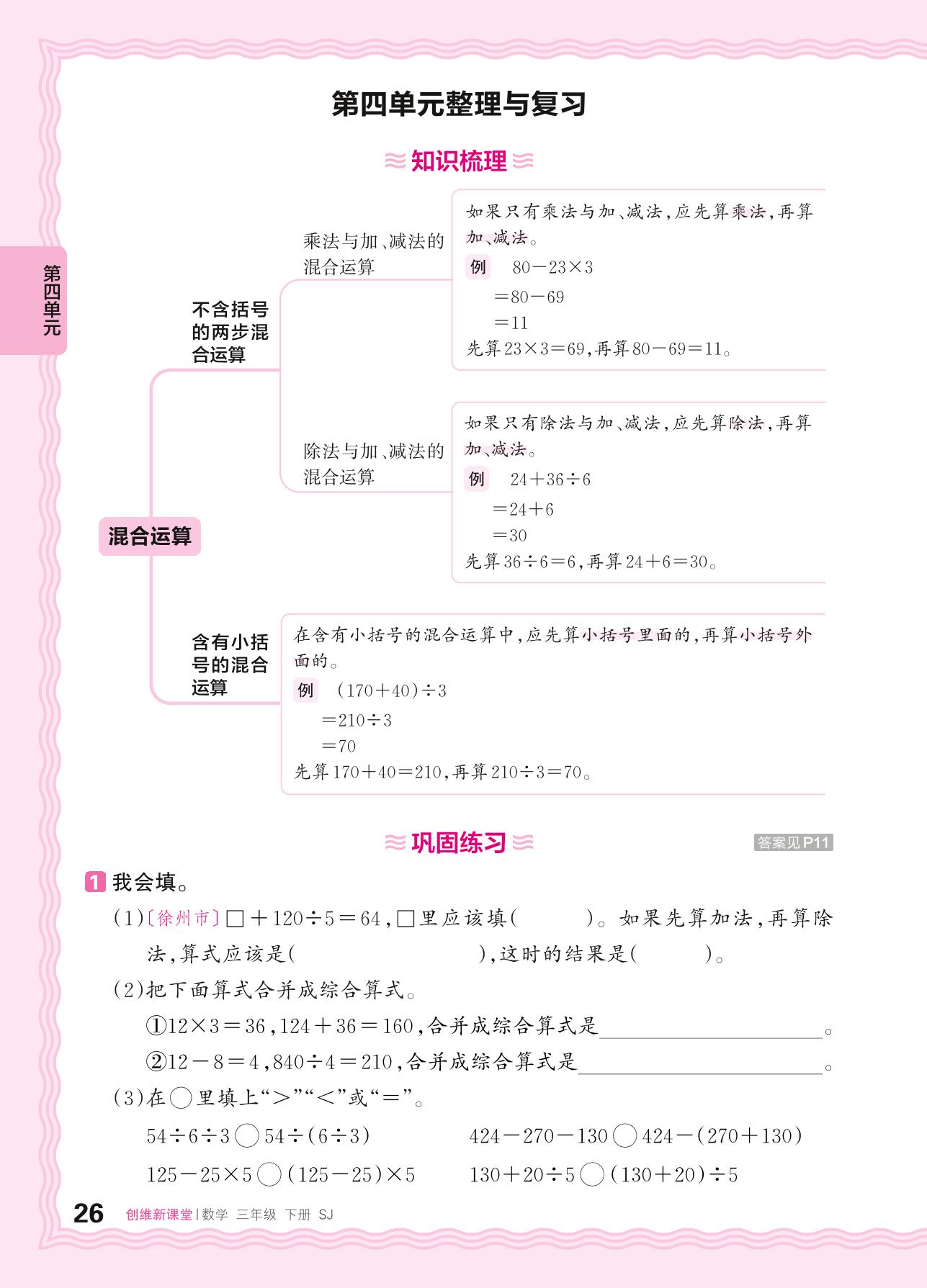 2024春下册三年级数学苏教版 第四单元整理与复习