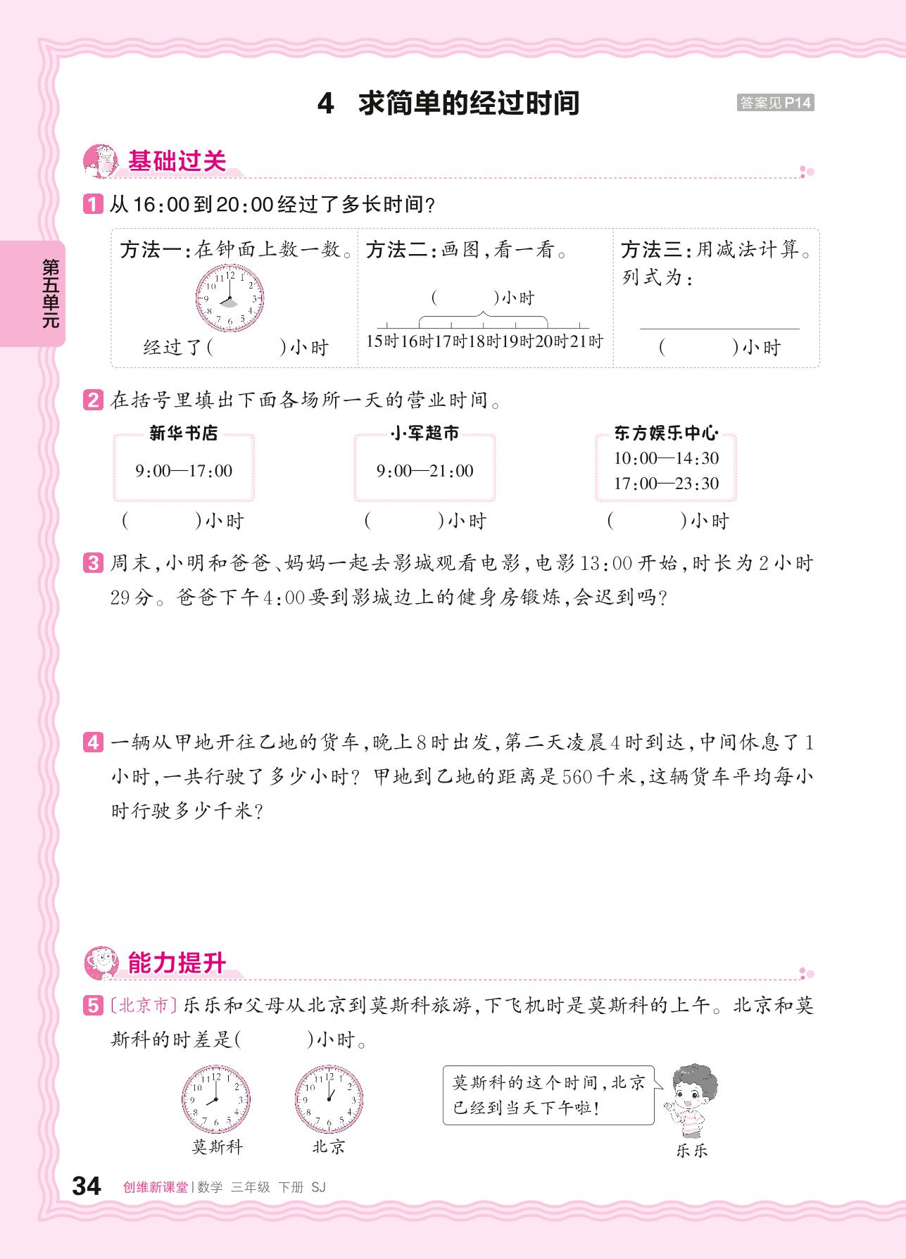 2024春下册三年级数学苏教版 第五单元 年、月、日——4. 求简单的经过时间