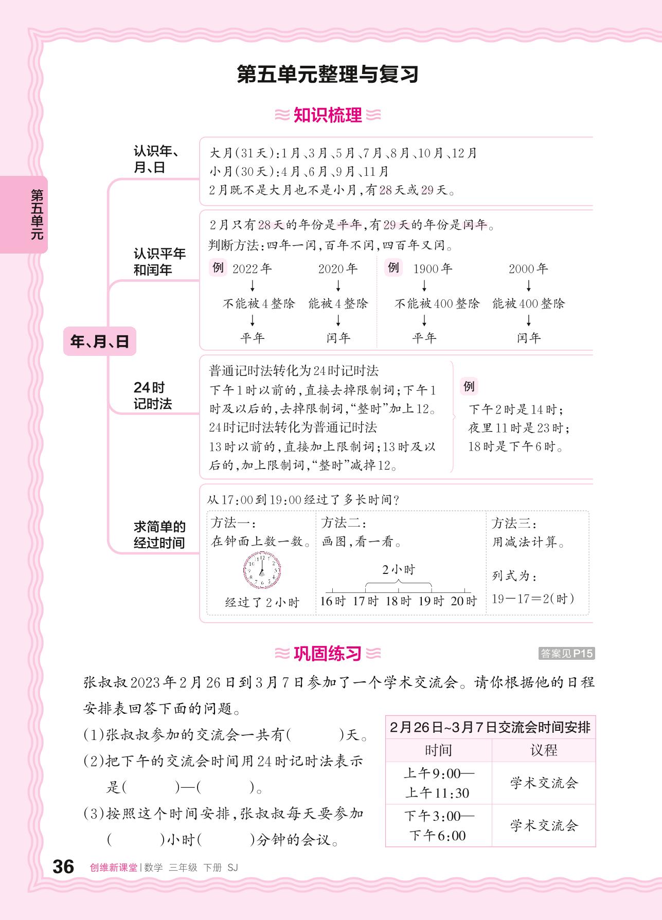 2024春下册三年级数学苏教版 第五单元整理与复习