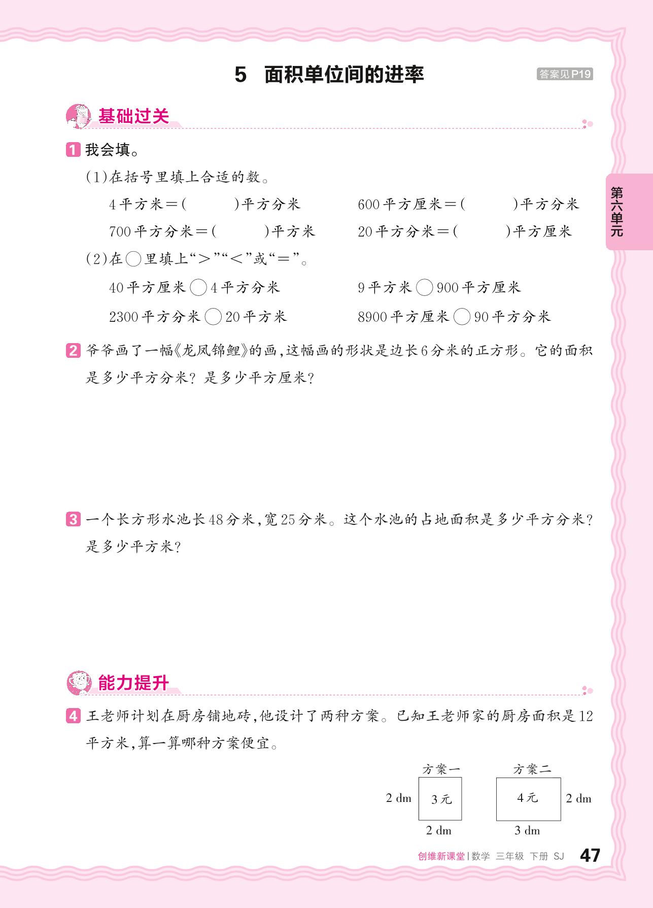 2024春下册三年级数学苏教版 第六单元 长方形和正方形的面积——5. 面积单位间的进率