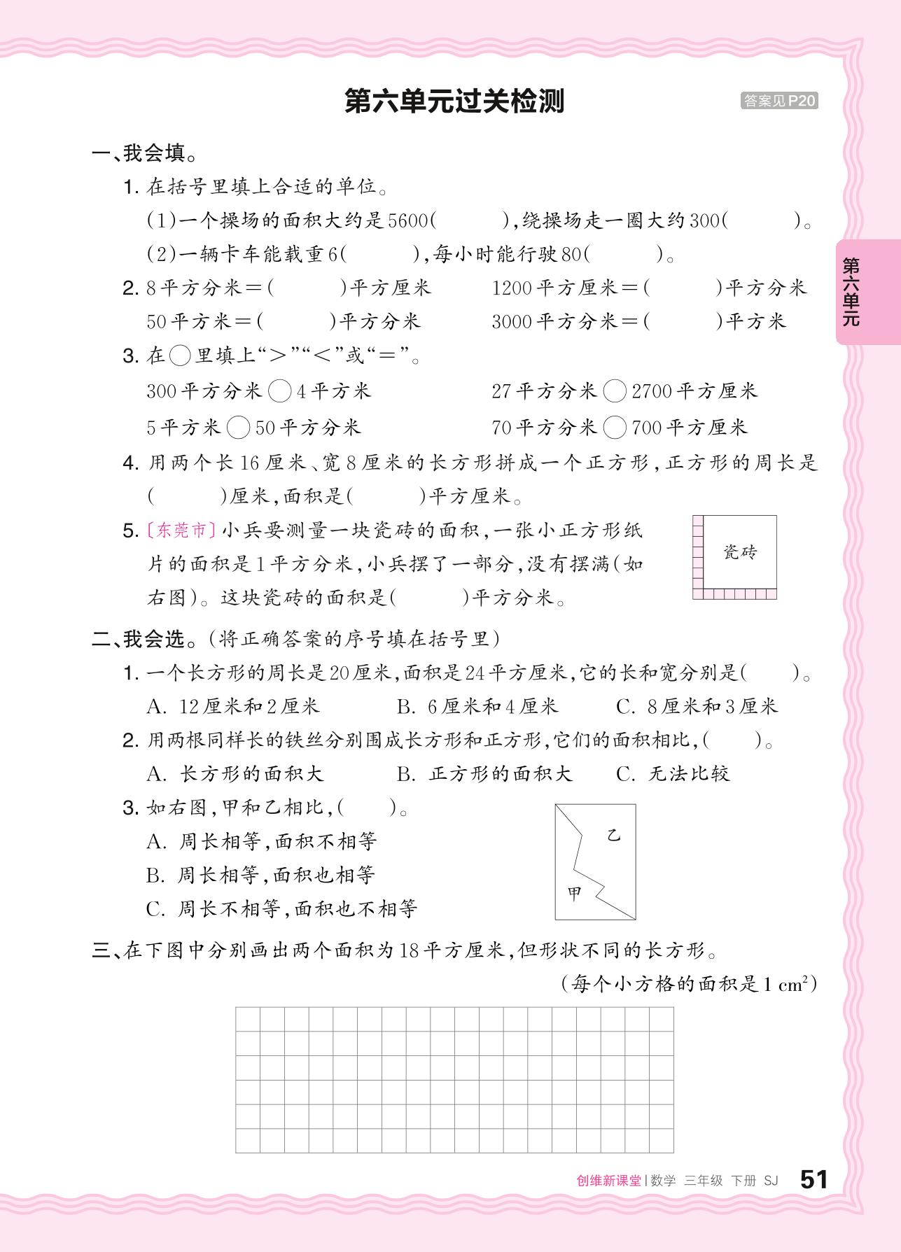 三年级数学苏教版下册单元卷