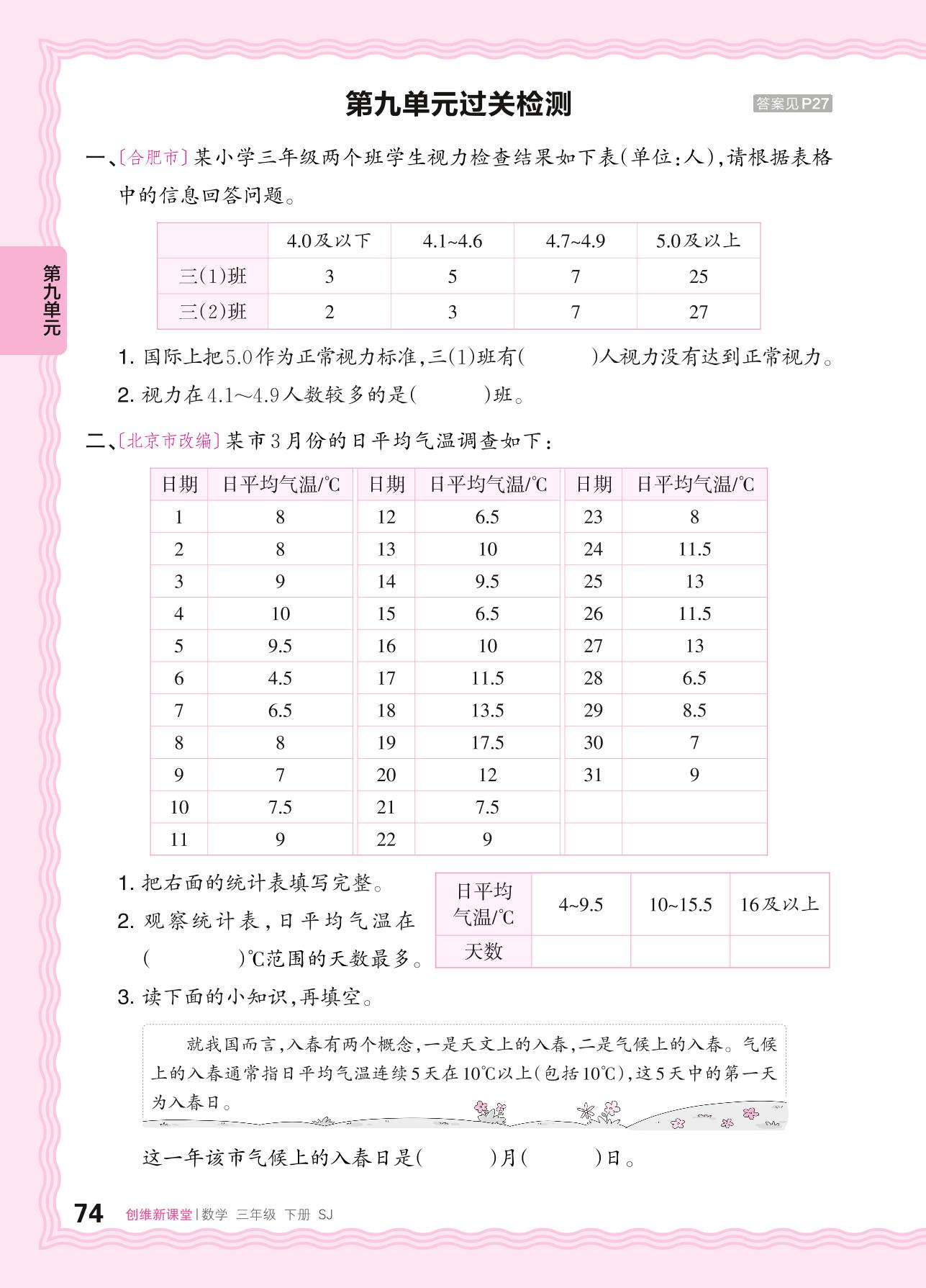 2024春下册三年级数学苏教版 第九单元过关检测