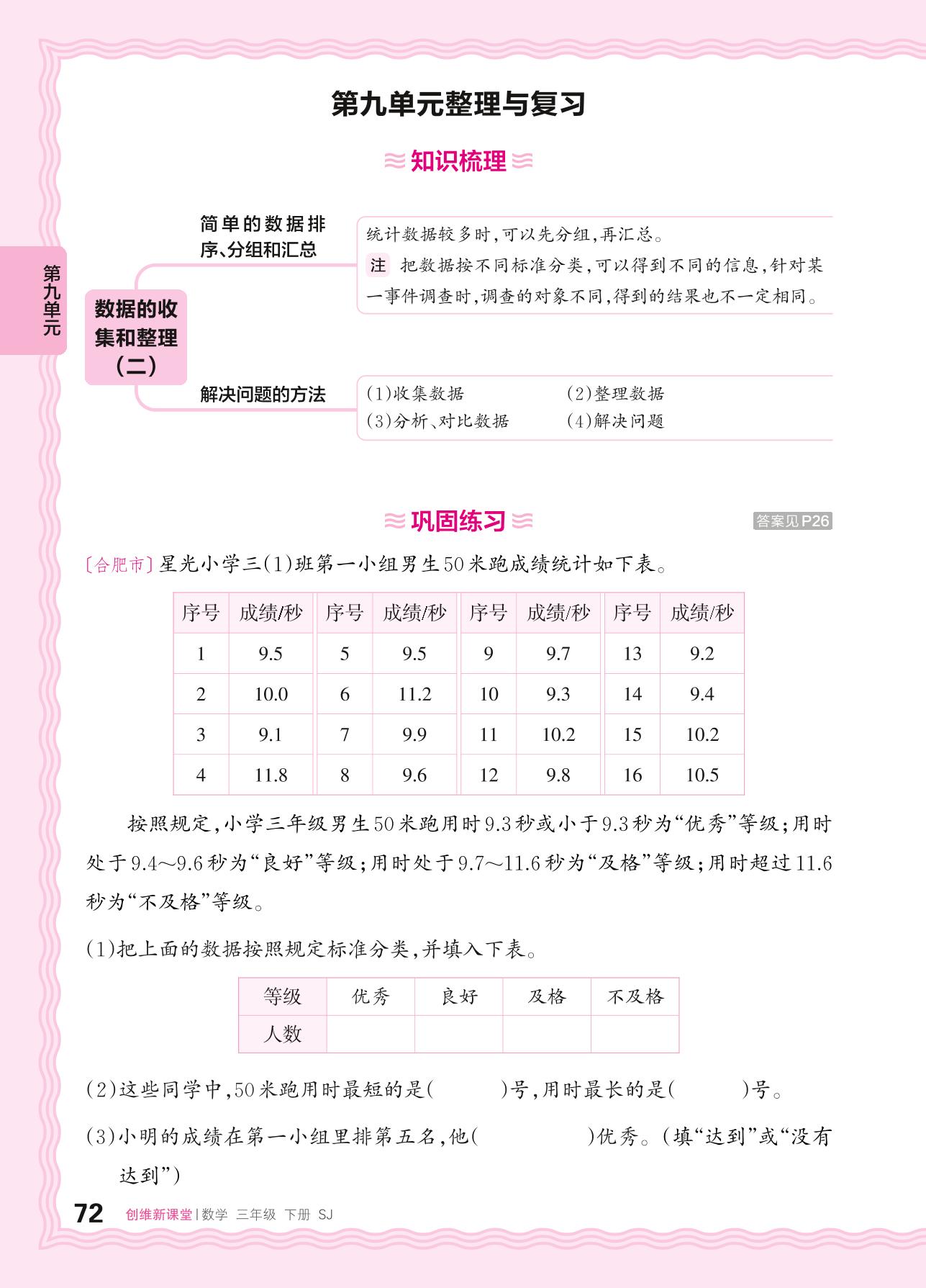 2024春下册三年级数学苏教版 第九单元整理与复习