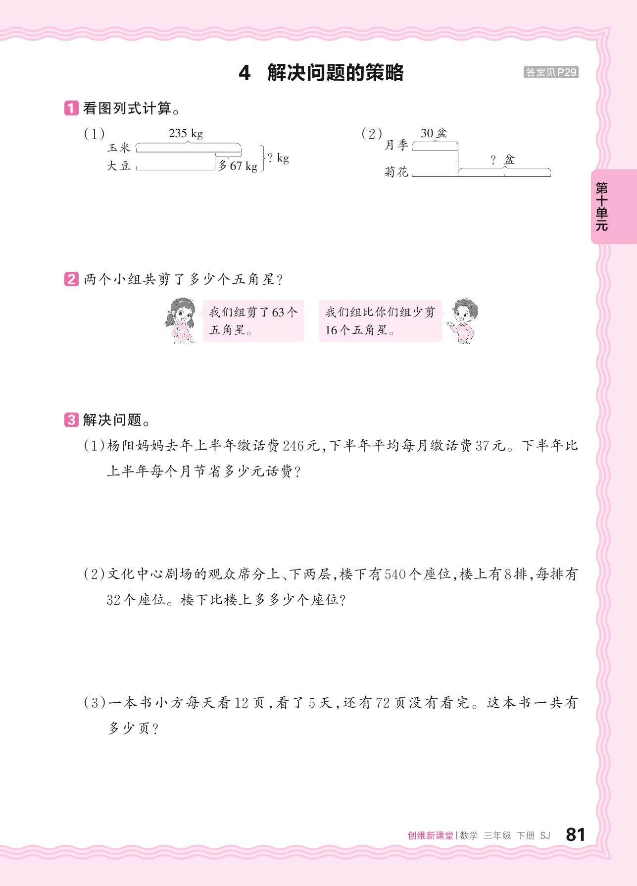 2024春下册三年级数学苏教版 第十单元 期末复习——4. 解决问题的策略