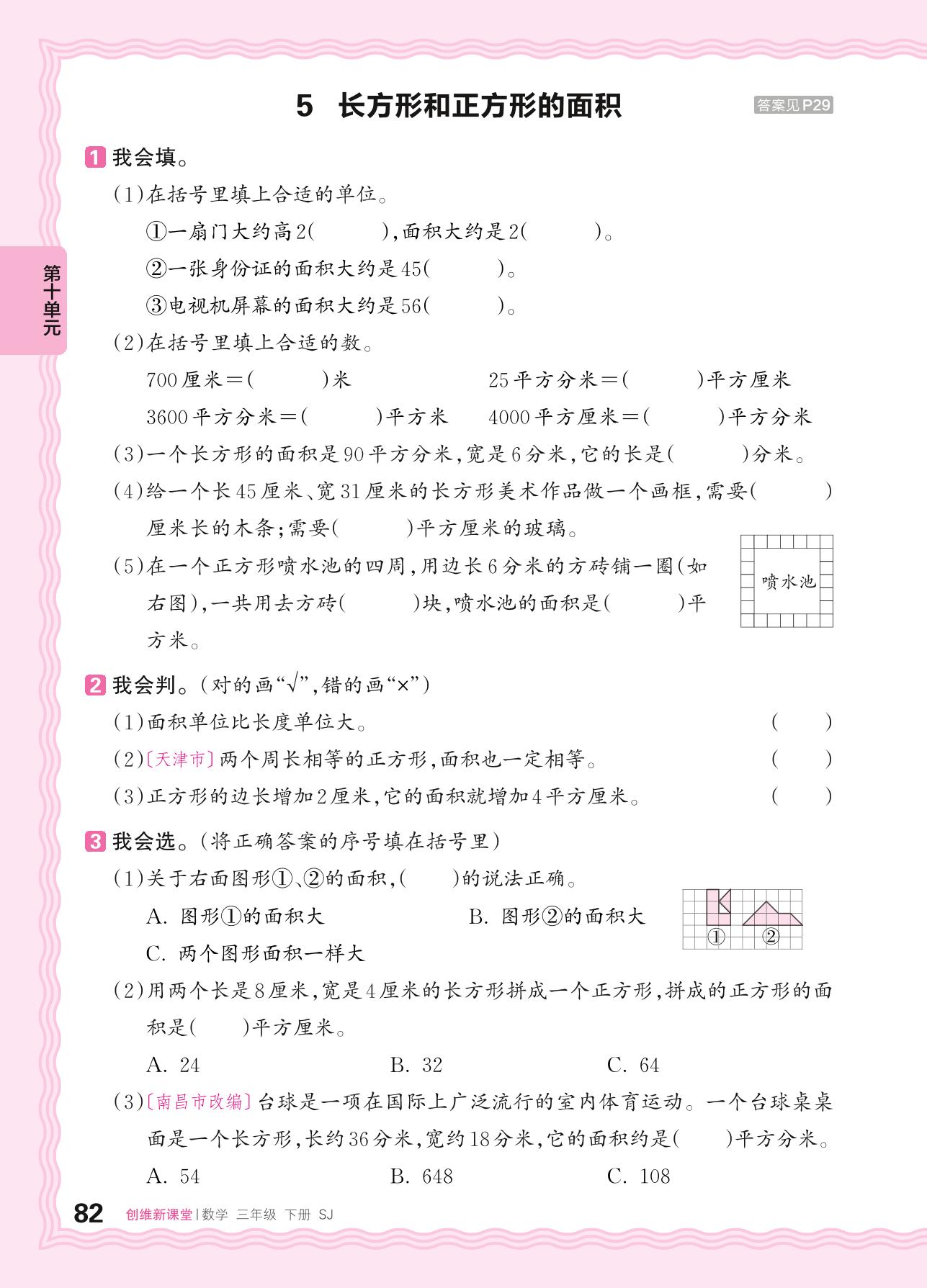 2024春下册三年级数学苏教版 第十单元 期末复习——5. 长方形和正方形的面积