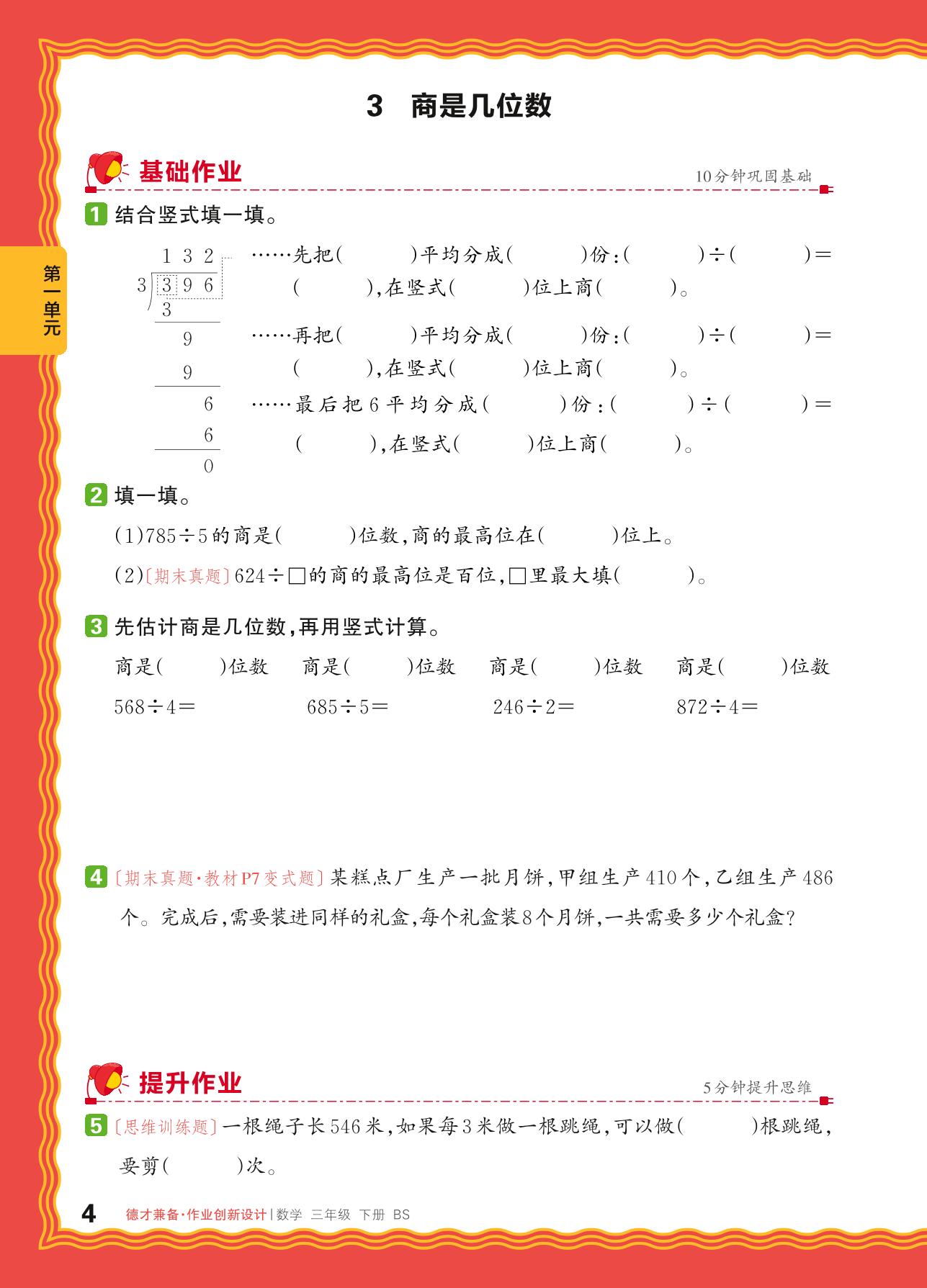 2024春下册三年级数学北师版 第一单元 除法——3. 商是几位数_R240124092135487