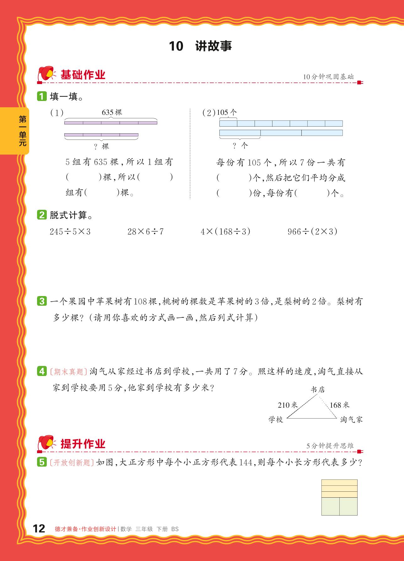 2024春下册三年级数学北师版 第一单元 除法——10. 讲故事